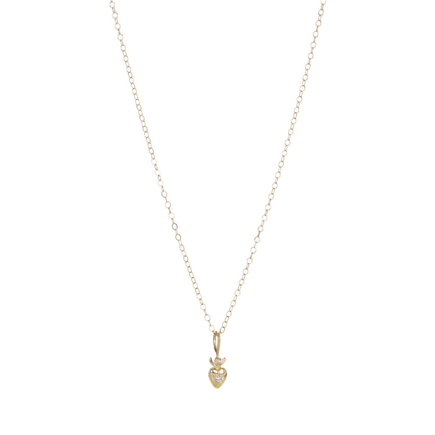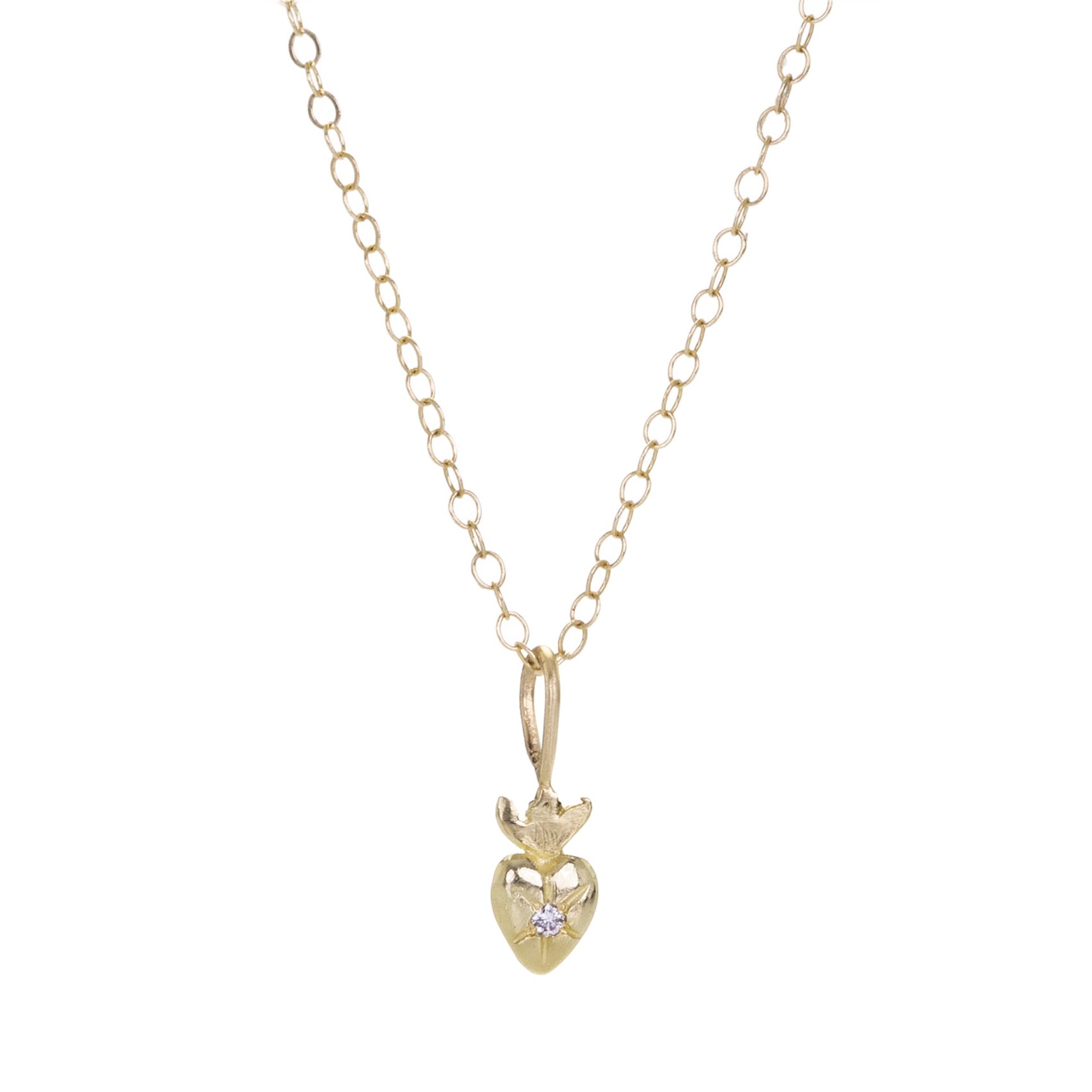 The essence of divine love, this 14k yellow gold pendant from Acanthus features a carved, diamond accented flaming heart. With the simplicity of an ancient aesthetic, this charm brings a small but powerful addition to your pendant collection. Total length with bail measures 1/2". Pendant only, chain is sold separately. Handcrafted in Saint Joseph, MN, U.S.