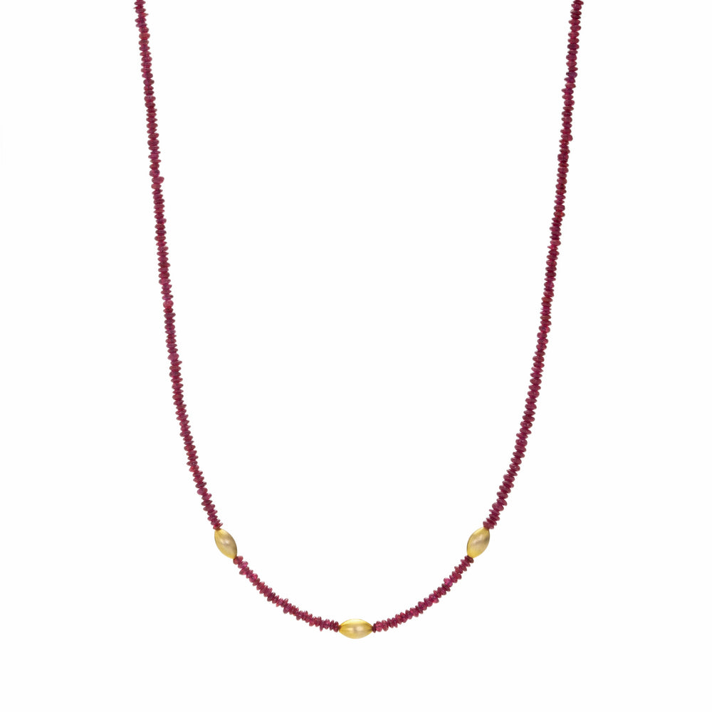 The perfect piece for layering or adding a delicate splash of color, this heishi turquoise beaded necklace from Ananda Khalsa features a center section with a 22k triple dot charm. Total length with lobster clasp measures 16". Handcrafted in Northampton, MA, U.S.