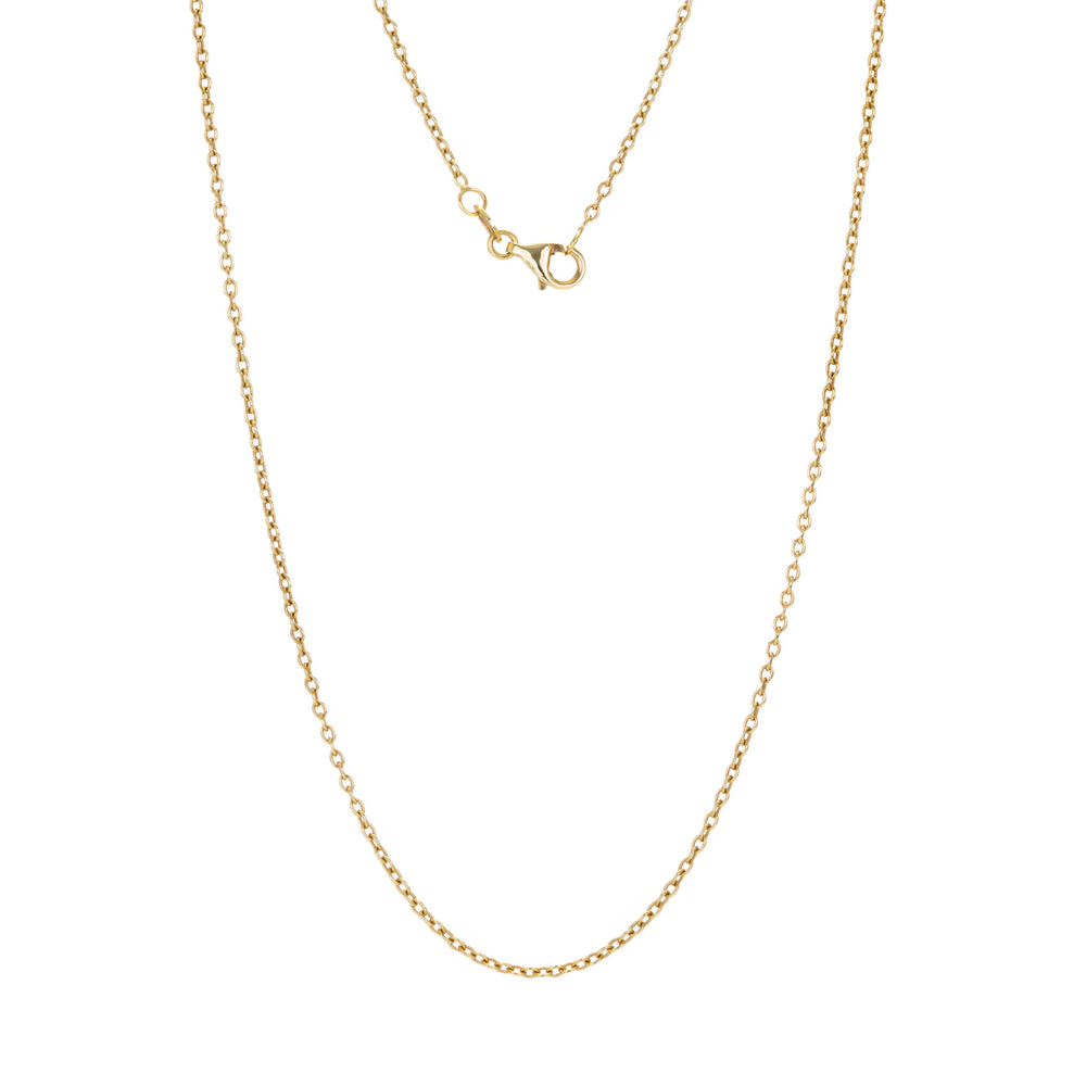 Perfect for layering or holding a treasured locket or pendant, this 18k gold 1.75mm cable chain from Annie Fensterstock simply drips of quality and love. Total length measures 18” with lobster clasp. Handcrafted in New York, NY, U.S.