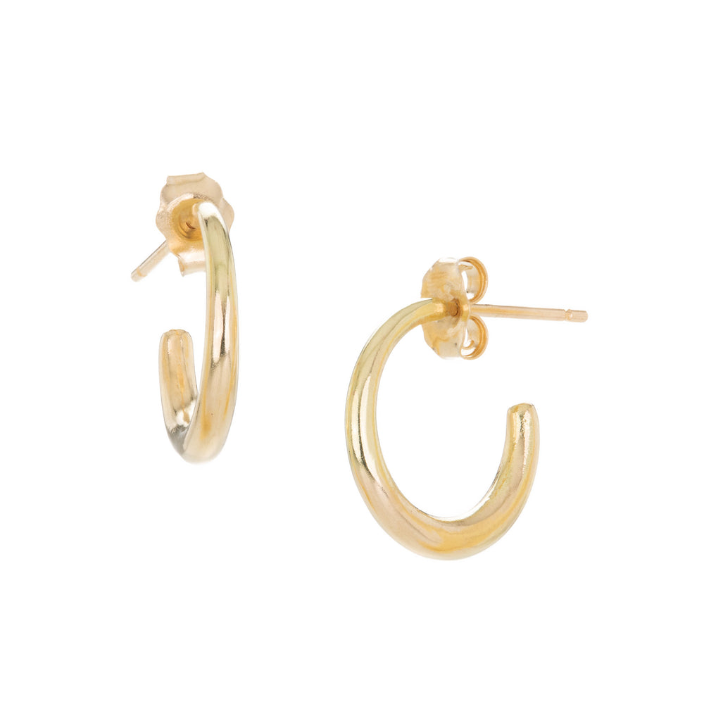This sleek, curvy pair of 18k yellow gold hoops from Diana Mitchell will cheerfully complete any look! Hoops feature a high polish and measure just over 1/2“. Handcrafted in Brooklyn, NY, U.S.
