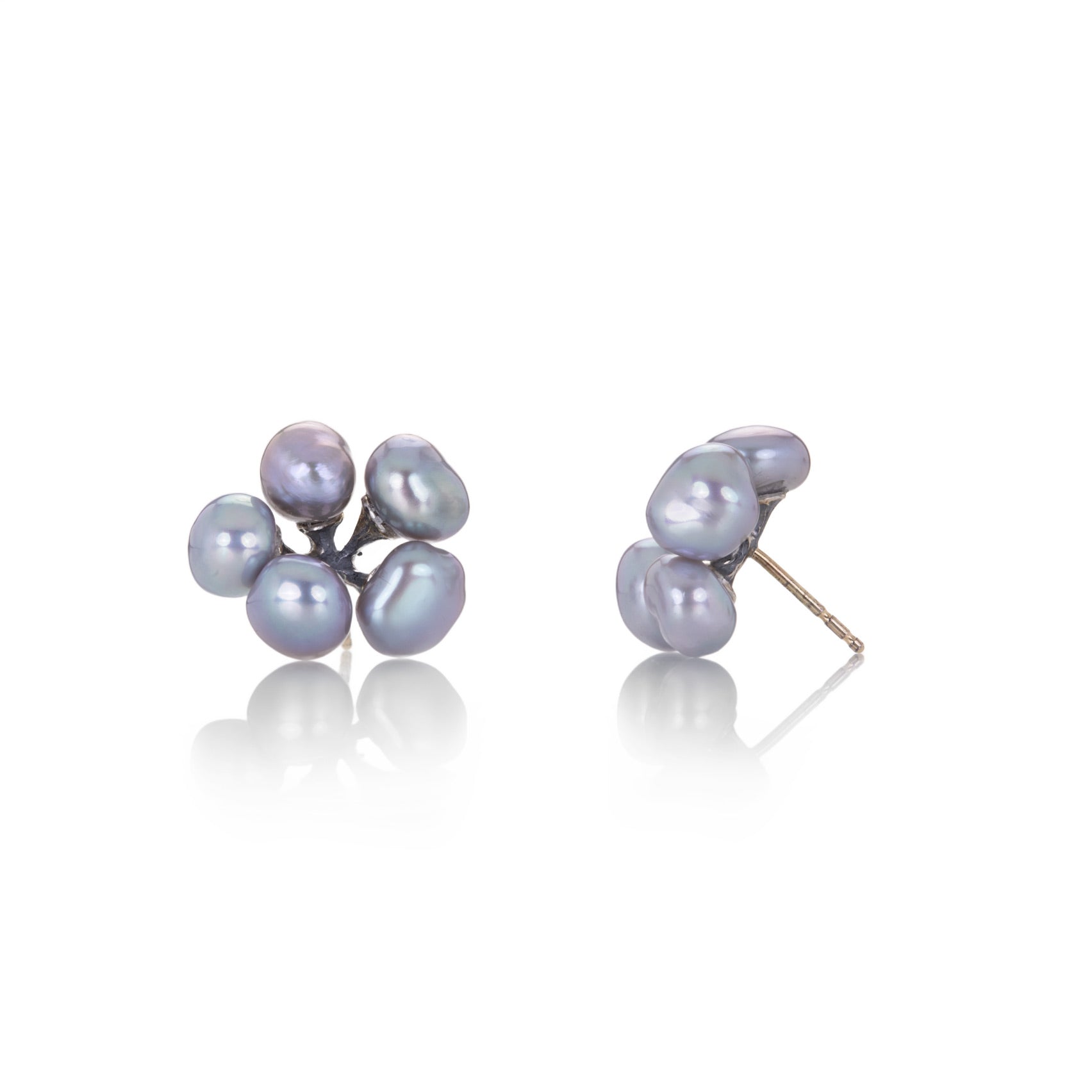 Playful and dramatic, John Iversen’s jacks earrings are a contemporary twist on the childhood game. Meticulously crafted in oxidized sterling silver, these baroque freshwater pearl studs are like tiny sculptures for your ears!. Earrings measure approximately 3/4” in diameter with secure 18k gold post backs. Handcrafted in East Hampton, NY, U.S.