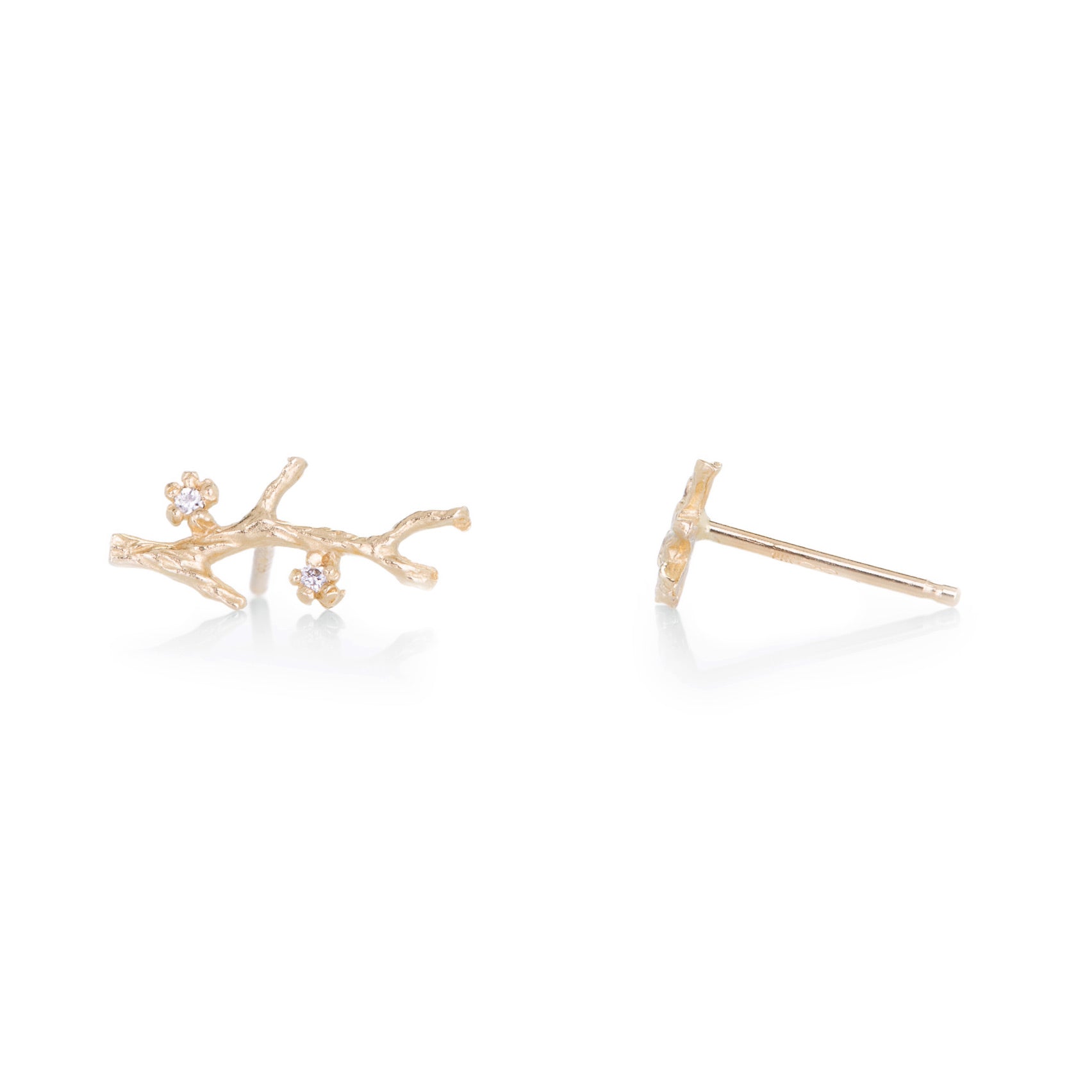 Charm your lobes with organic delight in this pair of 14k yellow gold studs from Victoria Cunningham. The wonderfully detailed branches feature sparkling diamond blooms. Earrings measure just under 1/4” x 1/2". Handcrafted in Los Angeles, CA, U.S.