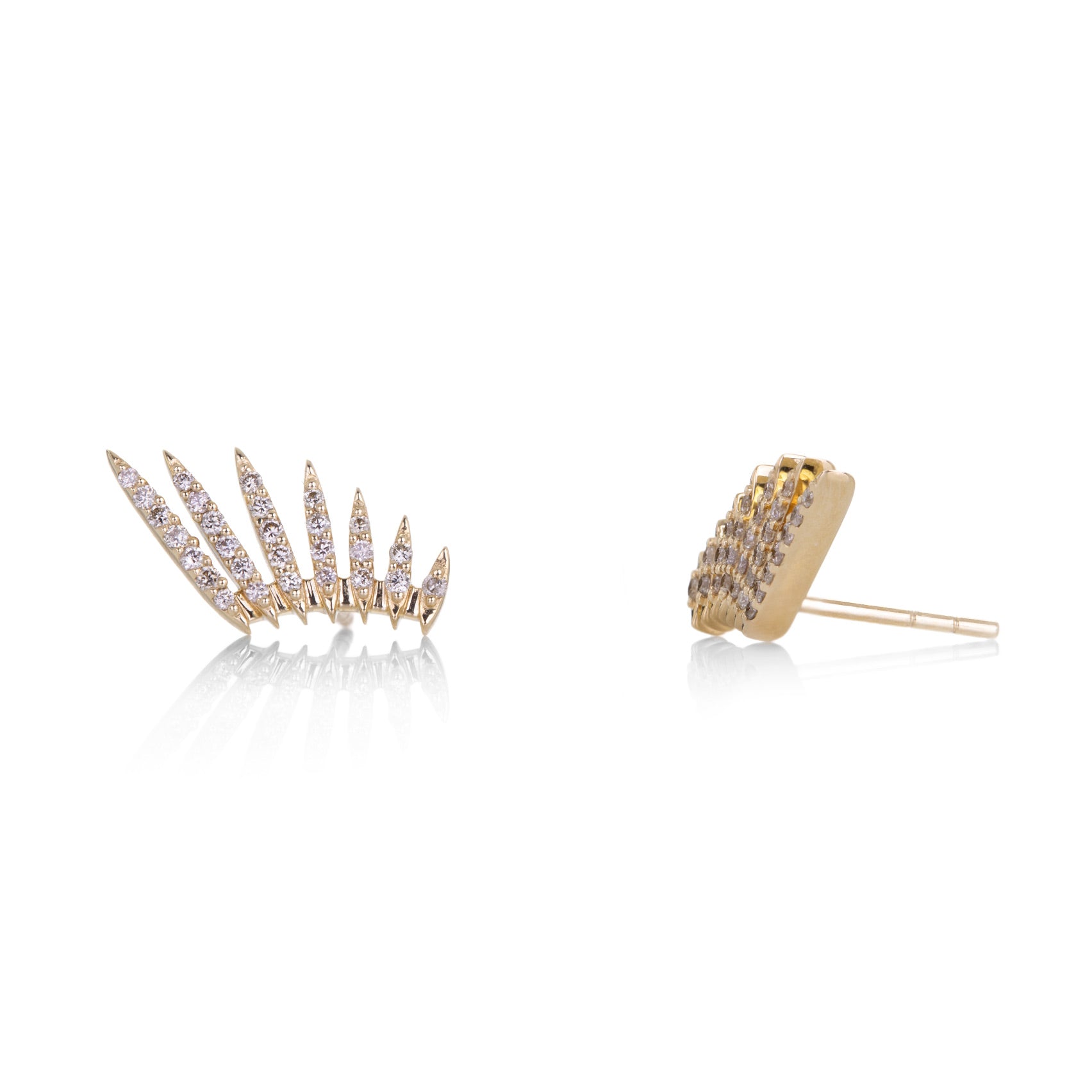 A pair of 14k yellow gold flying wing studs with white diamonds totaling 0.23ct. Studs measure 5/8" x 3/8". Handcrafted in Belgium.