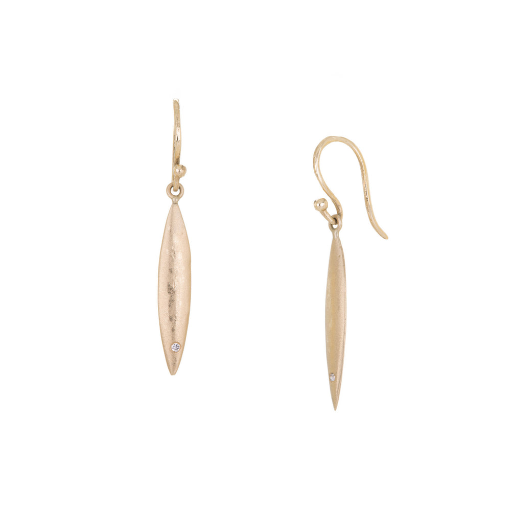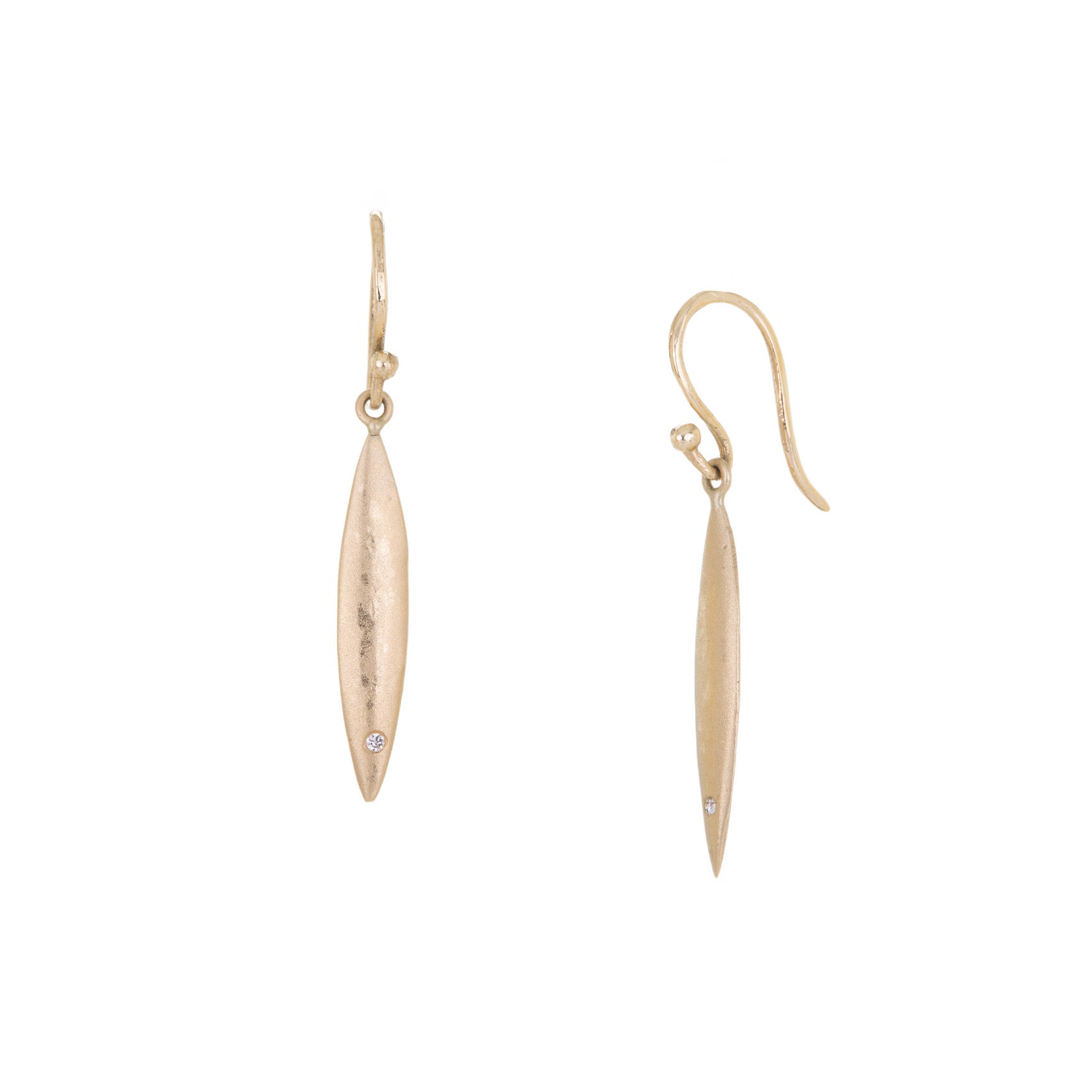 An elegant drop to complete any look, this versatile pair of 14k yellow gold earrings from Victoria Cunningham features white diamonds for a hint of fire. Total length with curved ear wires measures 1 1/8". Handcrafted in Los Angeles, CA, U.S.