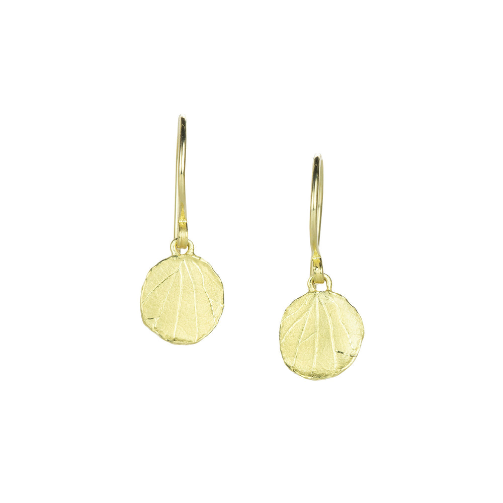 Find yourself dripping in gold in these 18k yellow gold Barbara Heinrich earrings. Leaf hook ear wires with detailed petal drops combine elegance with a floral inspired motif. Soft and versatile, this pair is perfect for any occasion! Total length measures 7/8". Handcrafted in Rochester, NY, U.S. This item is currently available online only. Please contact us at 617-655-4791 if you would like to make arrangements to see it in person at the gallery. Delivery may take 1-2 weeks.