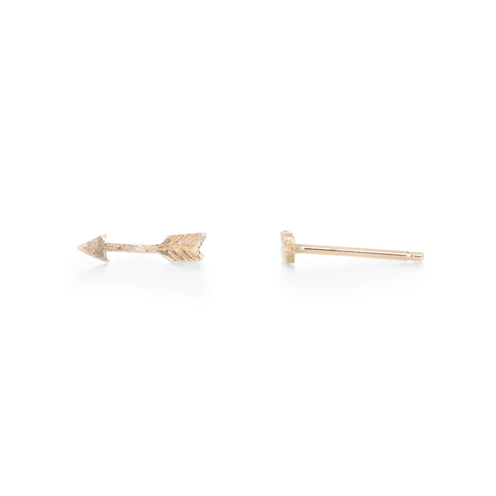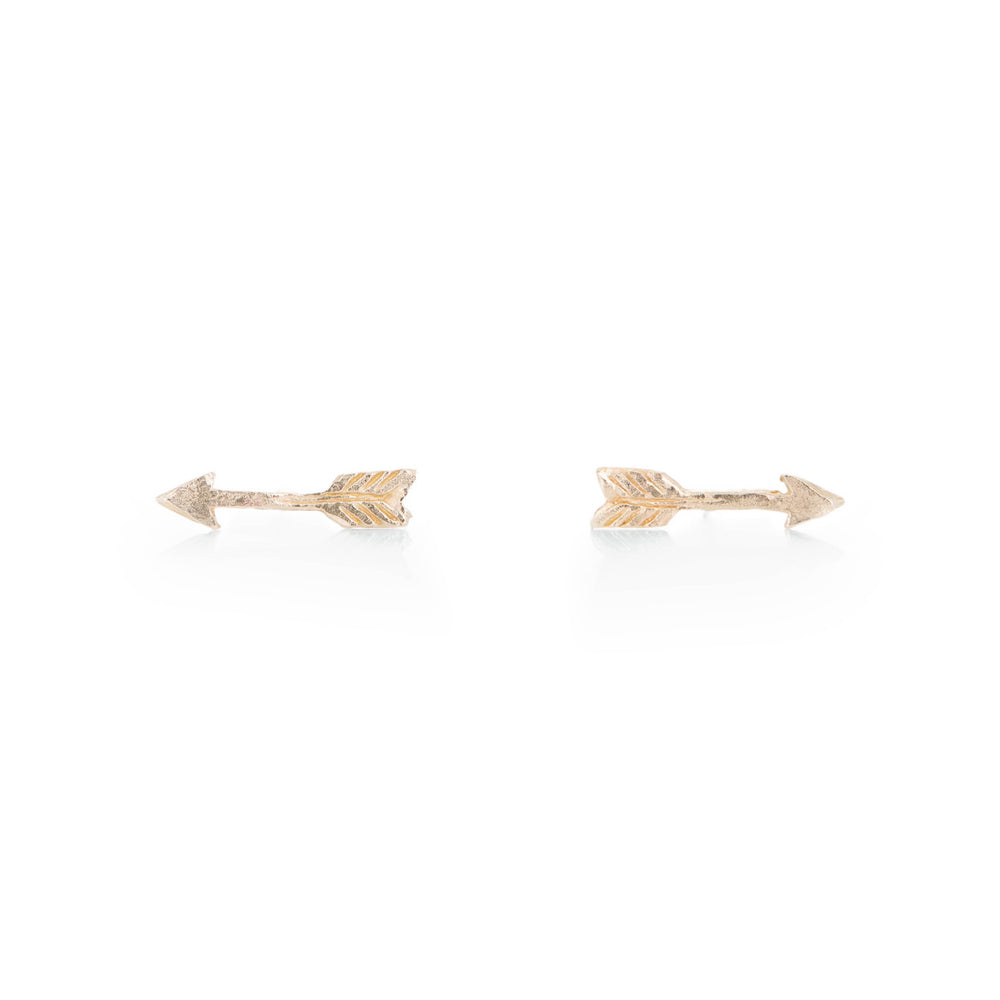 Charm your lobes with this sharp pair of 14k yellow gold studs from Victoria Cunningham. The delicate arrows feature hand carved detail. Studs measure 3/8” in length. Handcrafted in Los Angeles, CA, U.S.