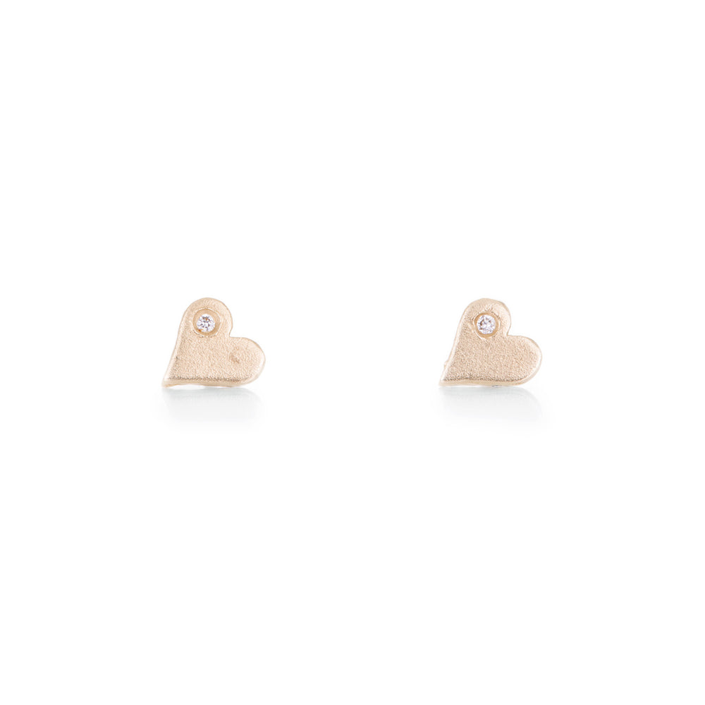 Charm your lobes with organic delight in this pair of 14k yellow gold studs from Victoria Cunningham. The wonderfully detailed hearts feature sparkling diamond accents. Earrings measure just under 1/4”. Handcrafted in Los Angeles, CA, U.S.