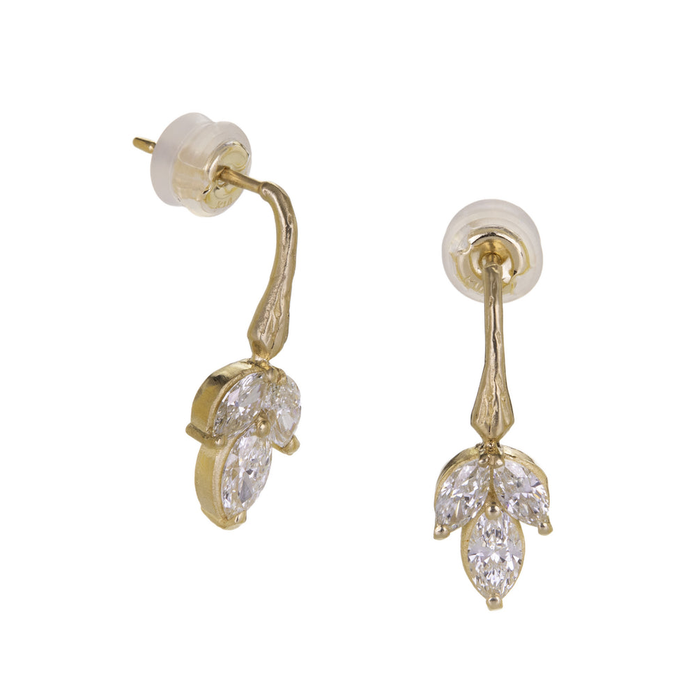 An elegant twist on traditional studs, this pair of 14k yellow gold earrings from Robin Haley adds a drop of sparkle with a hint of golden glow. Triple marquise diamonds totaling 0.74cttw are held on stationary, posted curved bars. Total length measures approximately 3/4“. Handcrafted in Nashville, TN, U.S.