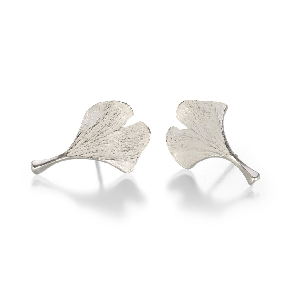 Organically elegant, this pair of bright silver baby ginkgo leaf studs from John Iversen is simply divine, symbolizing longevity and endurance. With 14k yellow gold posts, the delicately detailed studs measure 7/8" across. Handcrafted in East Hampton, NY, U.S.