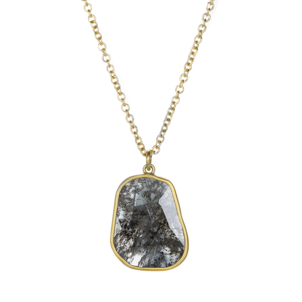 Let the fierce beauty of nature take hold in this 18k yellow gold necklace from Lola Brooks. A bezel set, 3.28ct diamond shard pendant has the strength to weather any storm. Pendant measures 7/8” x 1/2” on an 18" chain. Handcrafted in Lexington, GA, U.S.