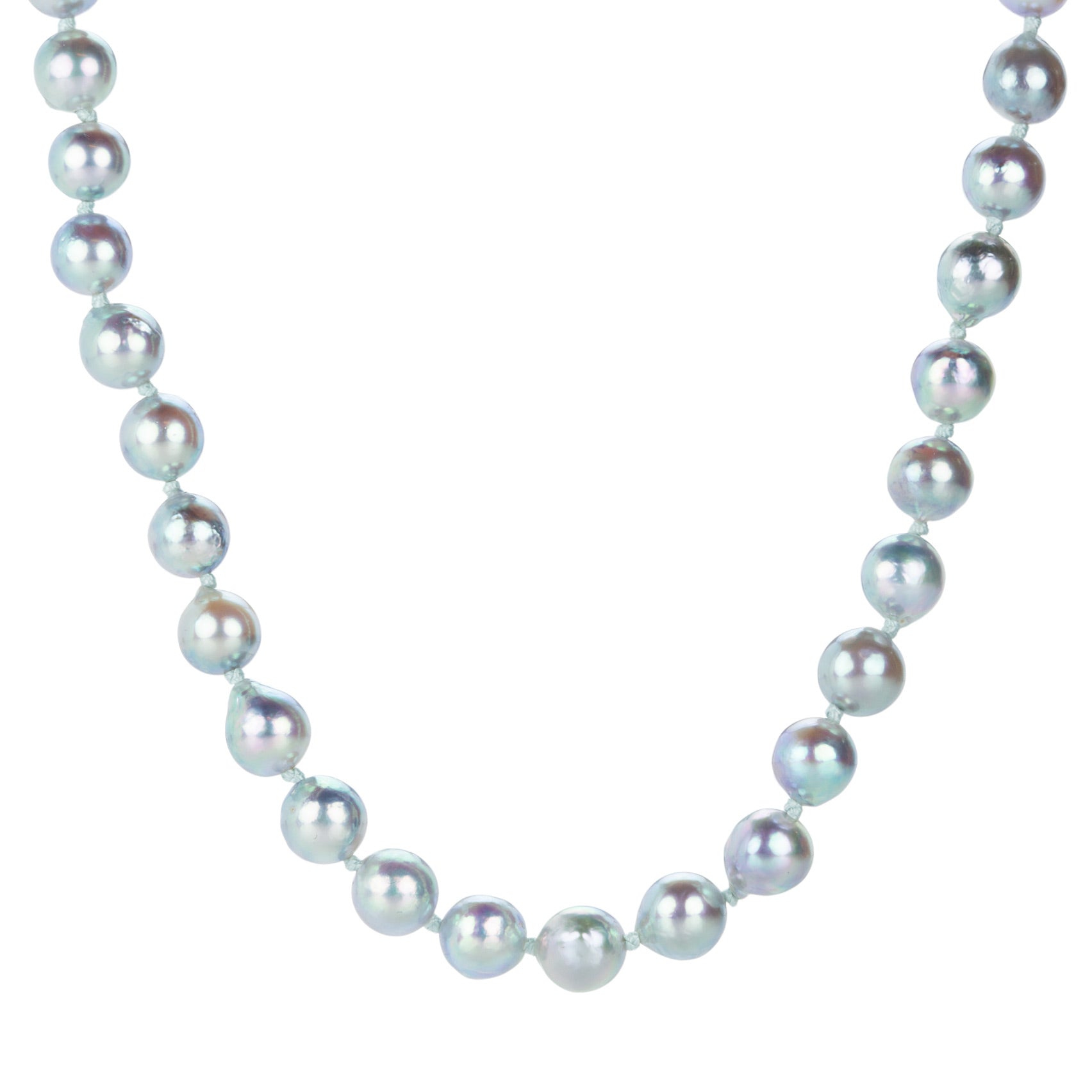 Timeless and classic, a strand of pearls is an heirloom tradition to be passed through the generations. This versatile necklace from Maria Beaulieu fits the bill with a hint of color, featuring hand knotted baroque gray Japanese akoya pearls measuring 7mm round. A perfect choker length with an 18k yellow gold S-hook clasp, this piece measures 15 1/2”. Handcrafted in Brooklyn, NY, U.S.
