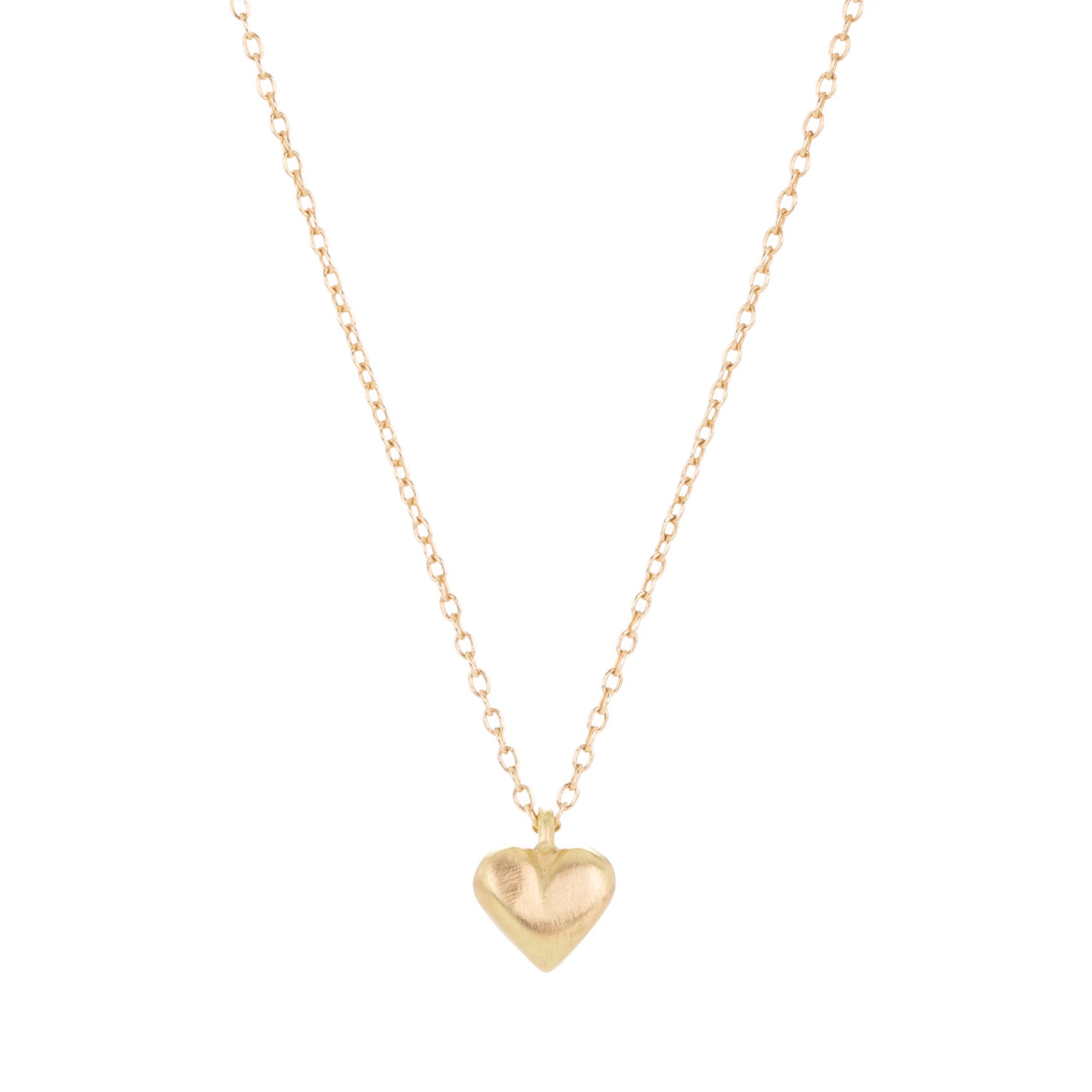 Let your sparkling heart shine in this charmed 18k yellow gold necklace from Marian Maurer! A polished micro heart pendant hangs on a fine cable chain, perfect for layering or as a sweet, simple declaration of love. Heart pendant measures 1/4" in diameter. Total chain length with lobster clasp measures 16”. Handcrafted in Brooklyn, NY, U.S.