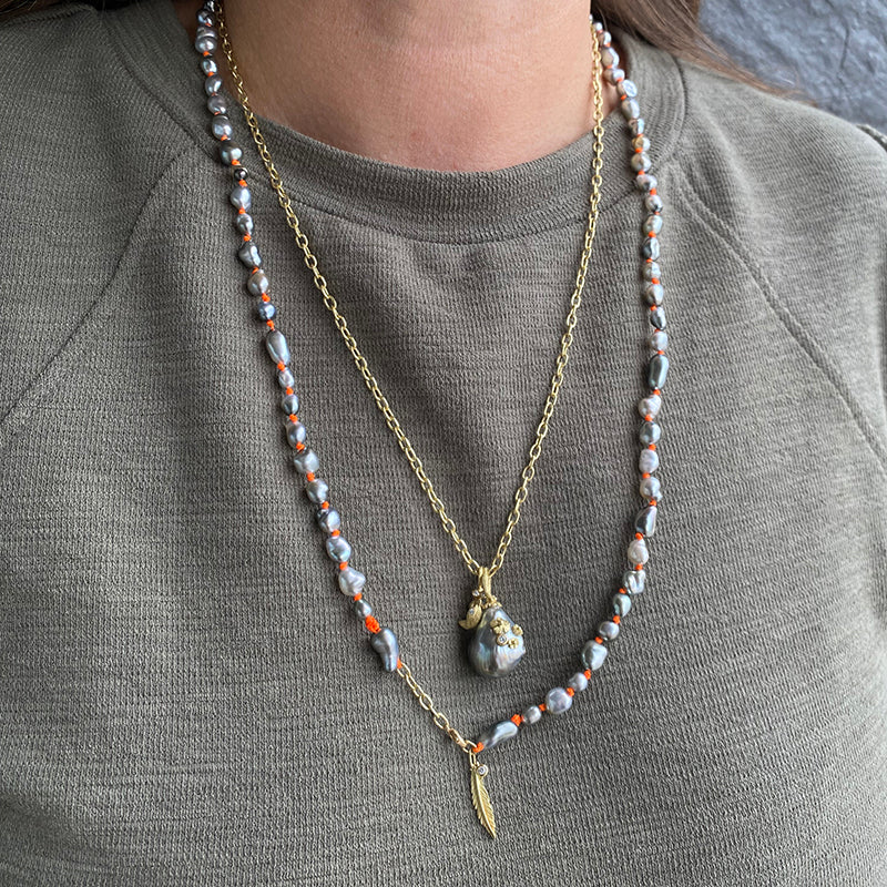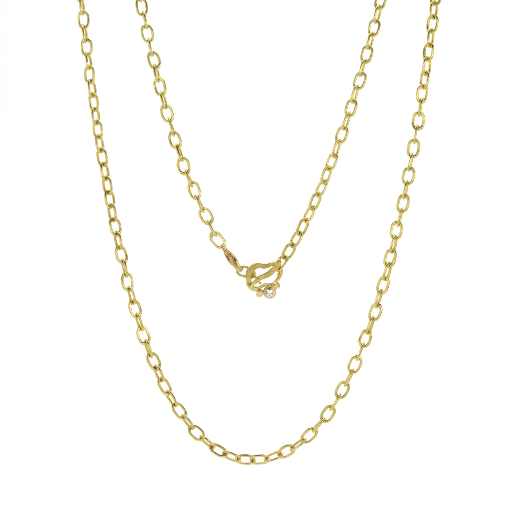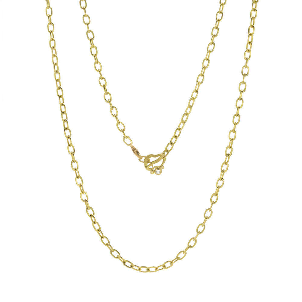 Layer on the links in this 18k yellow gold handmade chain necklace from Lene Vibe. A single 0.03ct bezel set diamond highlights the decorative lobster clasp. Chain length measures 22". Handcrafted in Denmark.