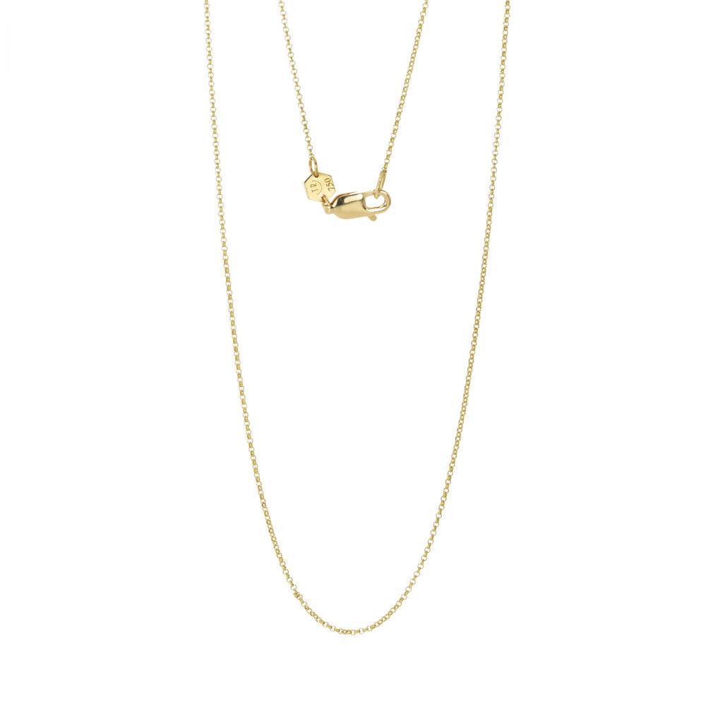 Every pendant needs a loving home, and this 1mm rolo chain from Tamsin Rasor fits just right! Pair it with a charm holder and your favorite charms and curate your own custom collection! Chain length measures 16” with lobster clasp. Handcrafted in New York, NY, U.S.