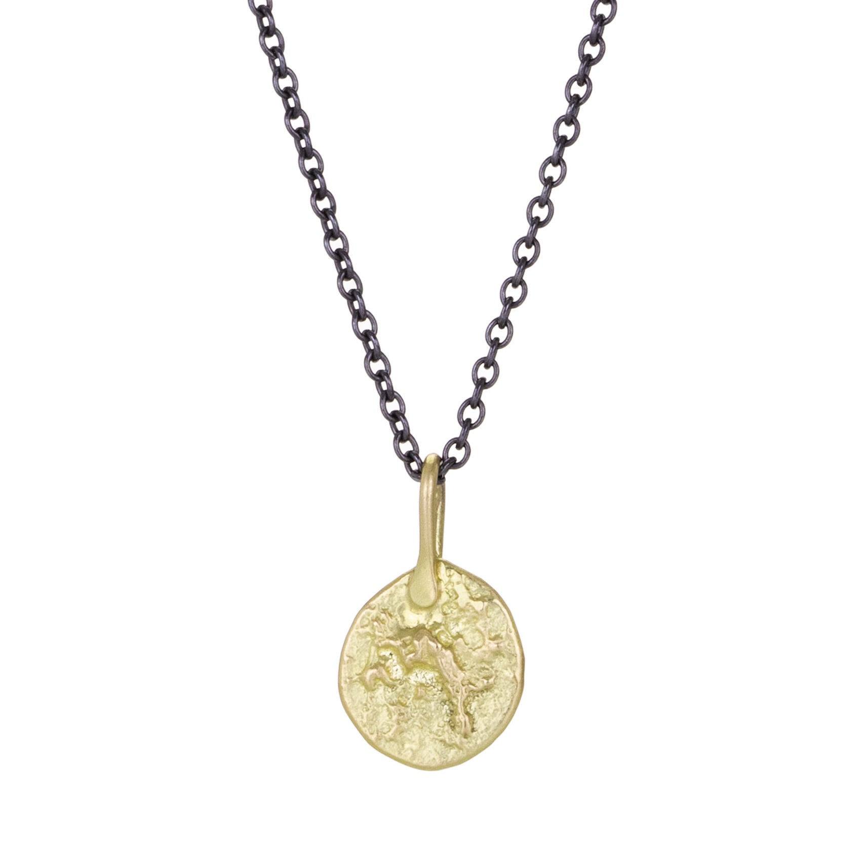 Experience pure golden alchemy with this one of a kind pendant from Sarah McGuire. Magnificently textured with the essence of giant kelp, this piece can anchor a pendant cluster or boldly stand alone. Total length measures 5/8". Pendant only, chain is sold separately. Handcrafted in Chicago, IL, U.S.