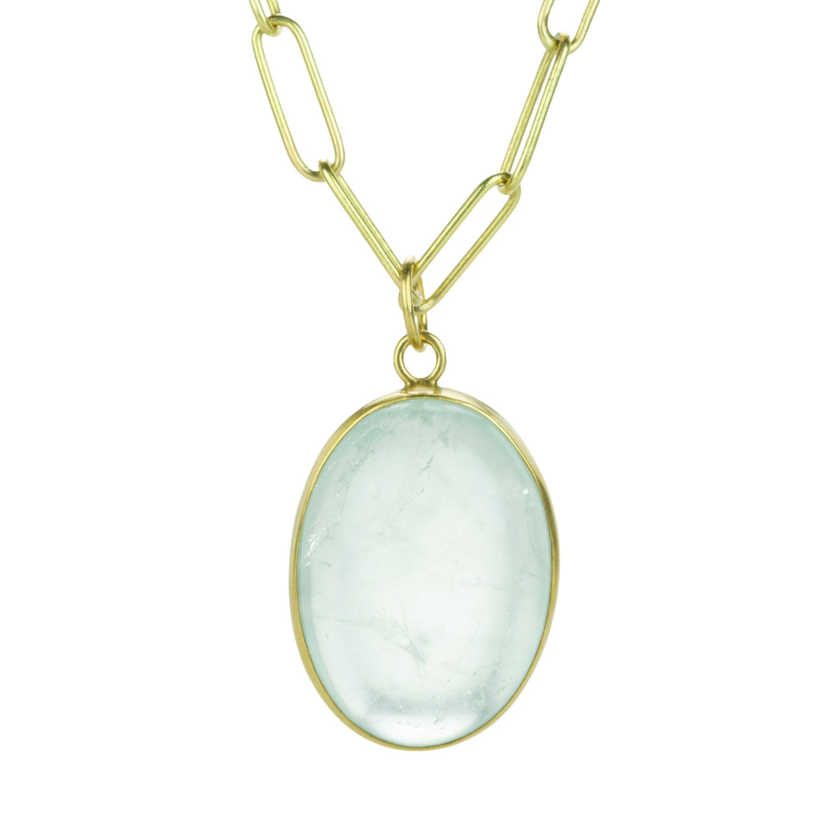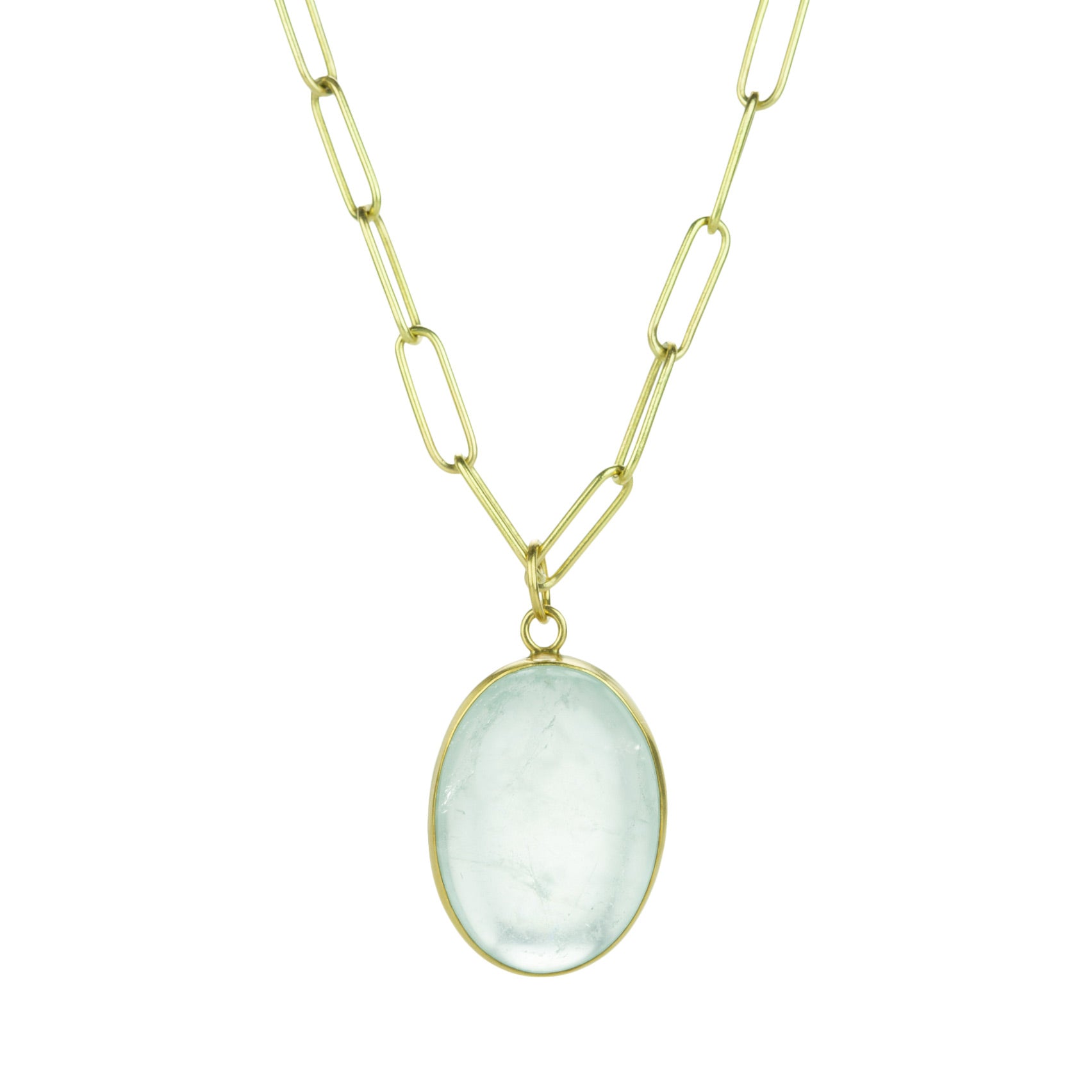 Like an infinite pool of water from the salty sea, this flashy aquamarine pendant sparkles and shines with wonder. Simply bezel set in 18k yellow gold, Maria Beaulieu intends to let nature’s gifts take center stage. This piece is perfect for the mermaid at heart! Stone measures 17mm x 23mm. Pendant measures just under 1 1/4”. Chain sold separately. Handcrafted in Brooklyn, NY, U.S.