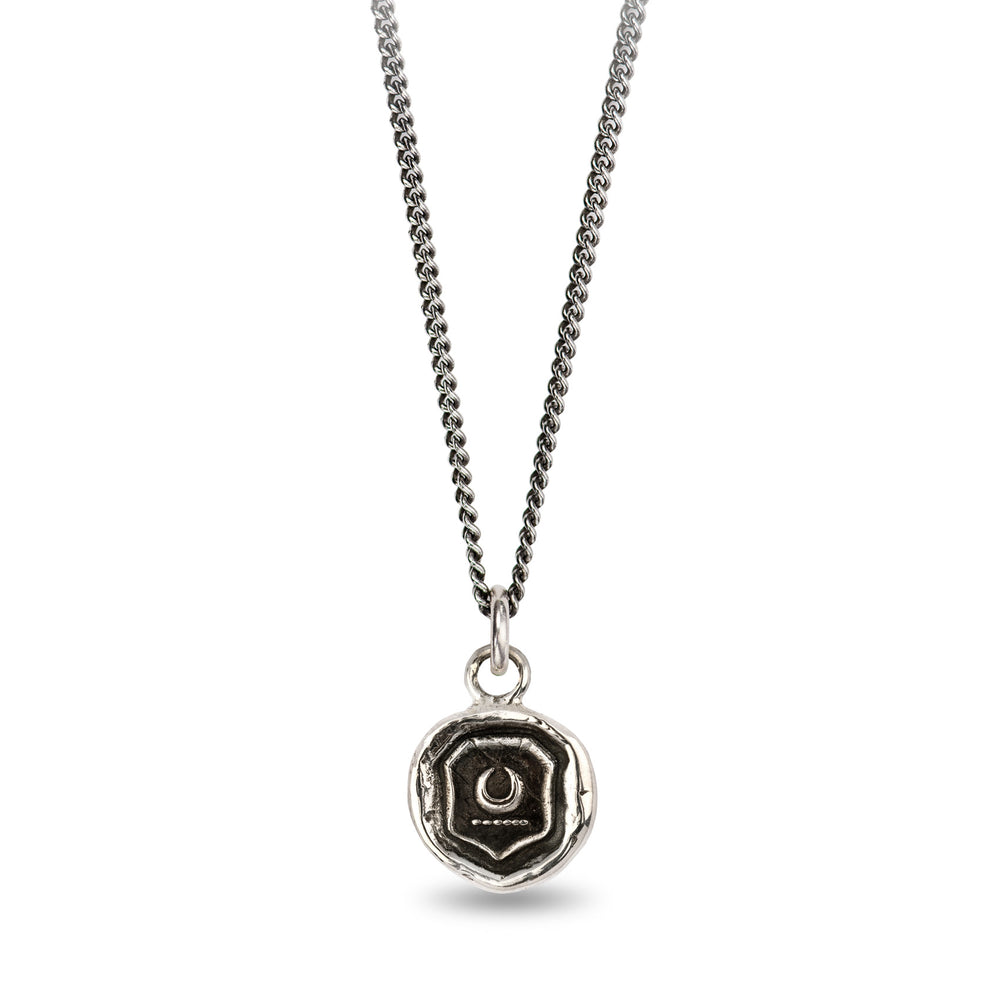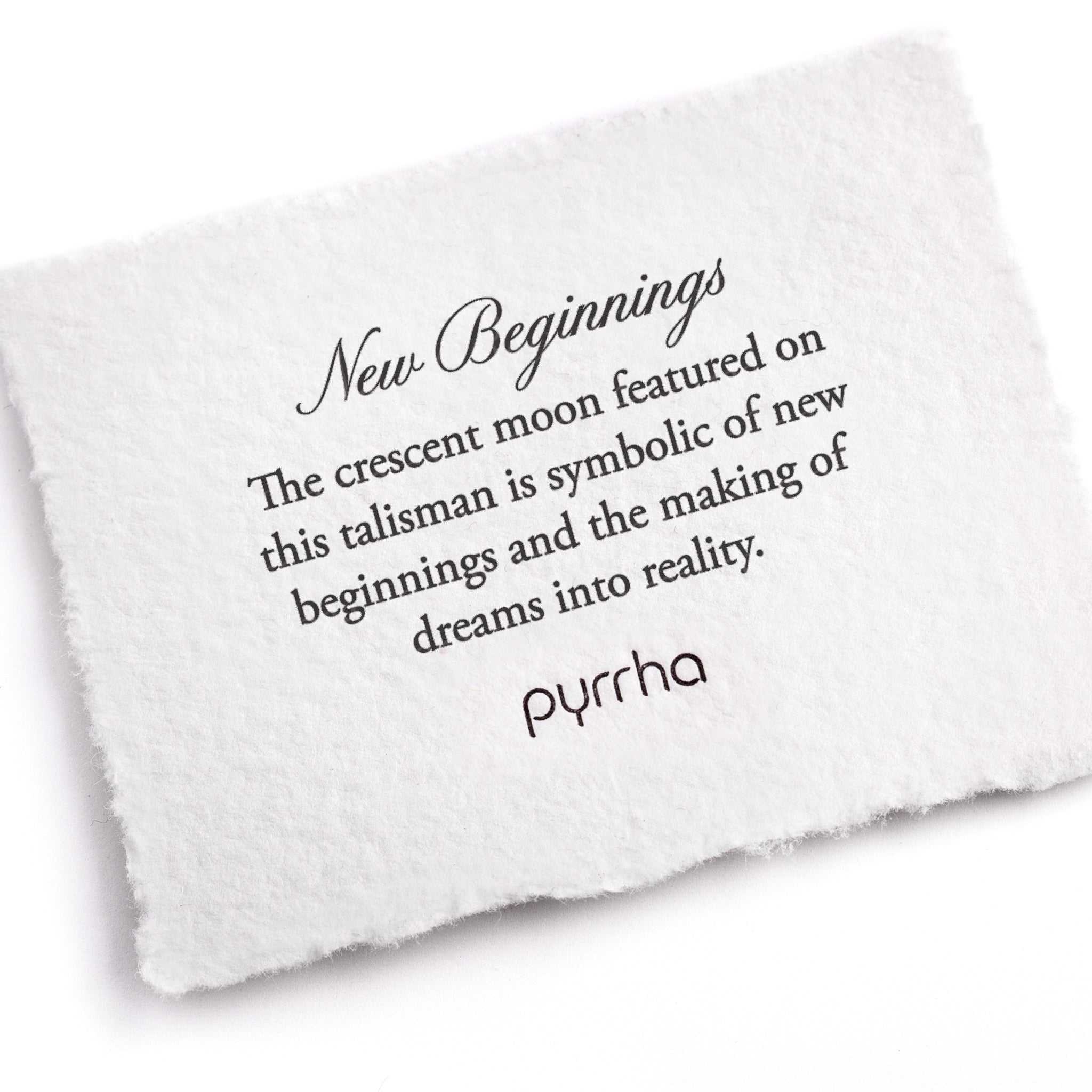 The crescent moon featured on this Pyrrha pendant is symbolic of new beginnings and the making of dreams into reality. Lovingly and sustainably cast in recycled sterling silver with a layer of black ceramic, this potent talisman hangs on an 18" fine cable chain with lobster clasp. Consider adding a Pyrrha attraction charm to this piece for an extra layer of color and meaning. Pendant measures just over 1/2“ in total length, including bail. Handcrafted in Vancouver, Canada.