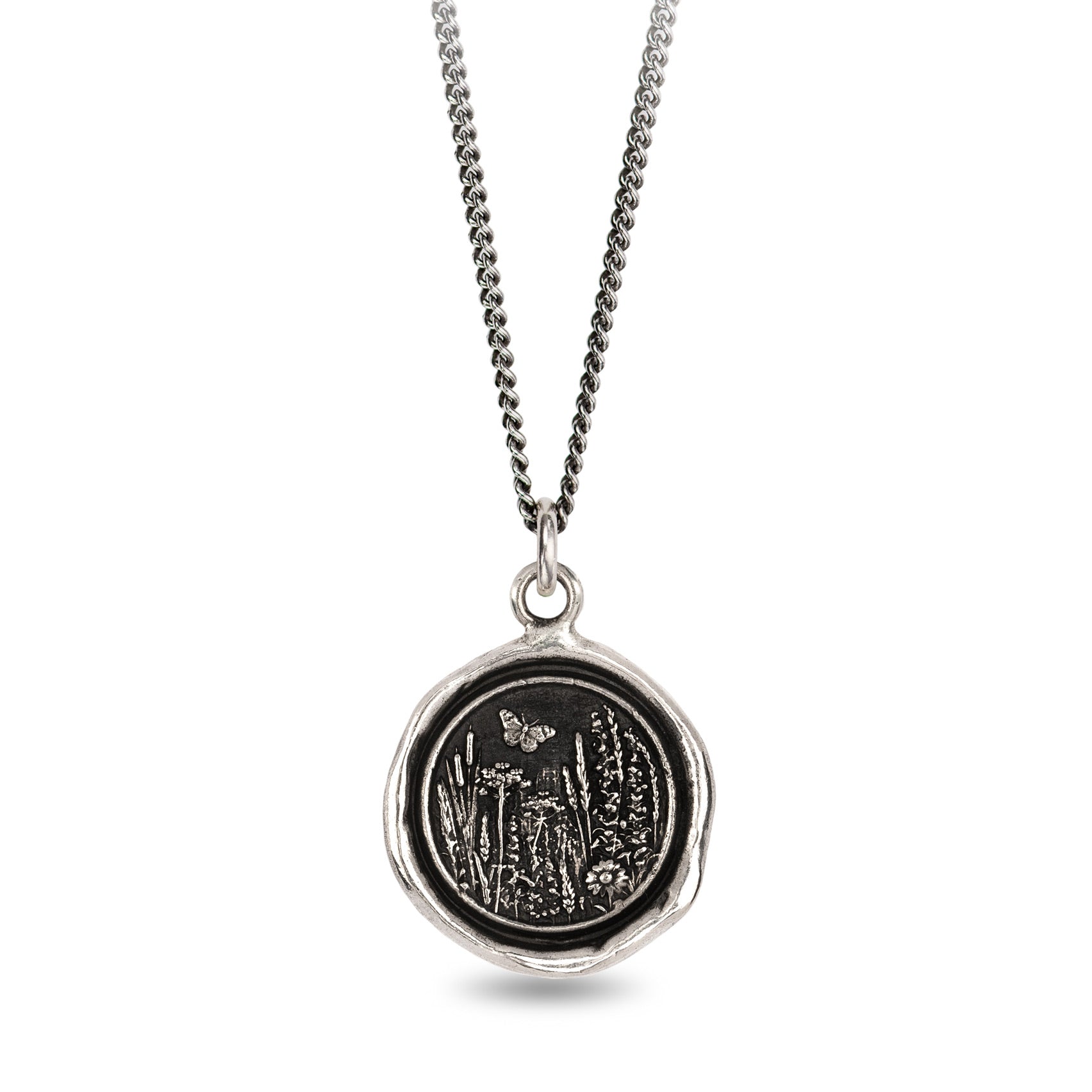 Like a wildflower meadow blooming freely under open skies, this Pyrrha pendant symbolizes a spirit guided by instinct, emotion, and authenticity. It is a reminder to stay true to yourself and to grow untamed and beautifully wild. Lovingly and sustainably cast in sterling silver, this potent talisman hangs on an 18" fine chain with lobster clasp. Consider adding a Pyrrha attraction charm to this piece for an extra layer of color and meaning. Handcrafted in Vancouver, Canada.