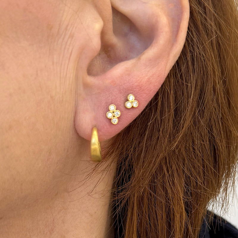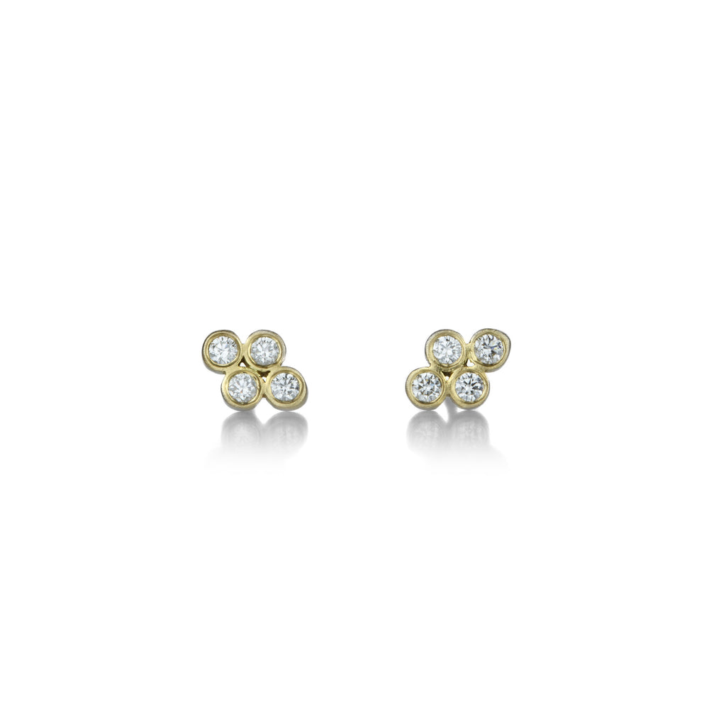 Just a little touch of sparkle brightens the whole day! This joyful pair of 18k yellow gold studs from Marian Maurer features a billowy form and bezel set white diamonds totaling 0.19cttw. Studs measure approximately 1/4” in width. Handcrafted in Brooklyn, NY, U.S.