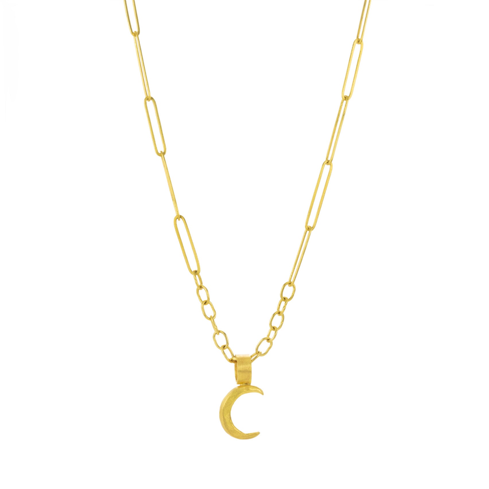 Dance by the light of the moon in this 22k yellow gold moon pendant from Rosanne Pugliese! A lovely ode to our lunar neighbor, this precious brushed pendant measures 3/4" x 3/8". Pendant only, chain is sold separately. Handcrafted in Brooklyn, NY, U.S.