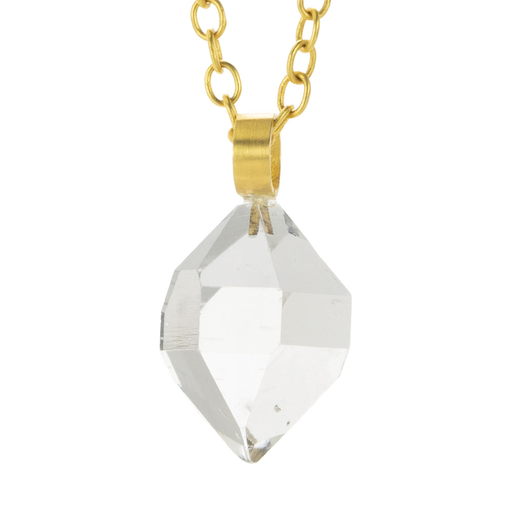 Allow nature a moment to shine in this magical pendant from Rosanne Pugliese! Set with a 22k yellow gold bail, the large Herkimer crystal carries infinite light! Pendant measures 1 1/4" x 5/8". Pendant only, chain is sold separately. Handcrafted in Brooklyn, NY, U.S.