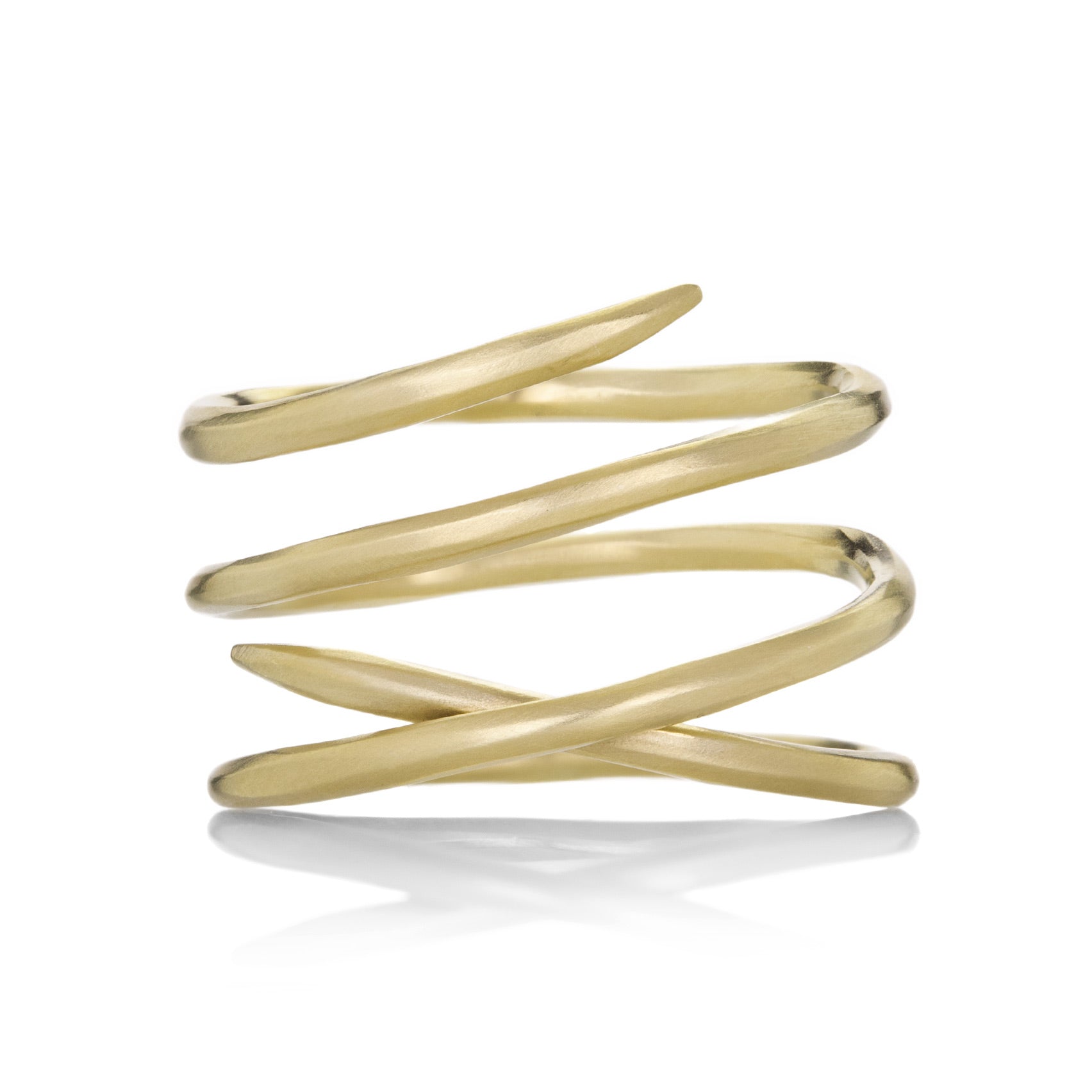 Dare you not to stare! This gleaming 18k yellow gold ring from Sarah McGuire wraps emphatically around the finger with wild abandon. The perfect blend of elegance and edge, this ring reads funky, fresh, and energized! Size 7. Handcrafted in Chicago, IL, U.S.