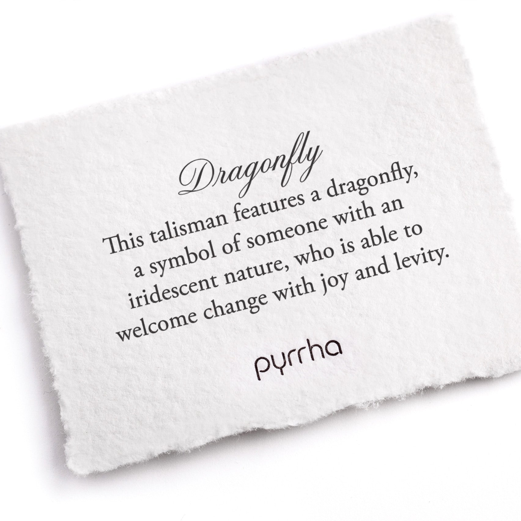 The dragonfly pictured on this Pyrrha pendant is a symbol of someone with an iridescent nature, who is able to welcome change with joy and levity. Lovingly and sustainably cast in recycled sterling silver with black contrast, this potent talisman hangs on an 22" sterling silver heavy paperclip chain with lobster clasp. Pendant measures 1 1/8" in length, including bail. This piece makes a perfect gift of encouragement for yourself or a loved one! Handcrafted in Vancouver, Canada.