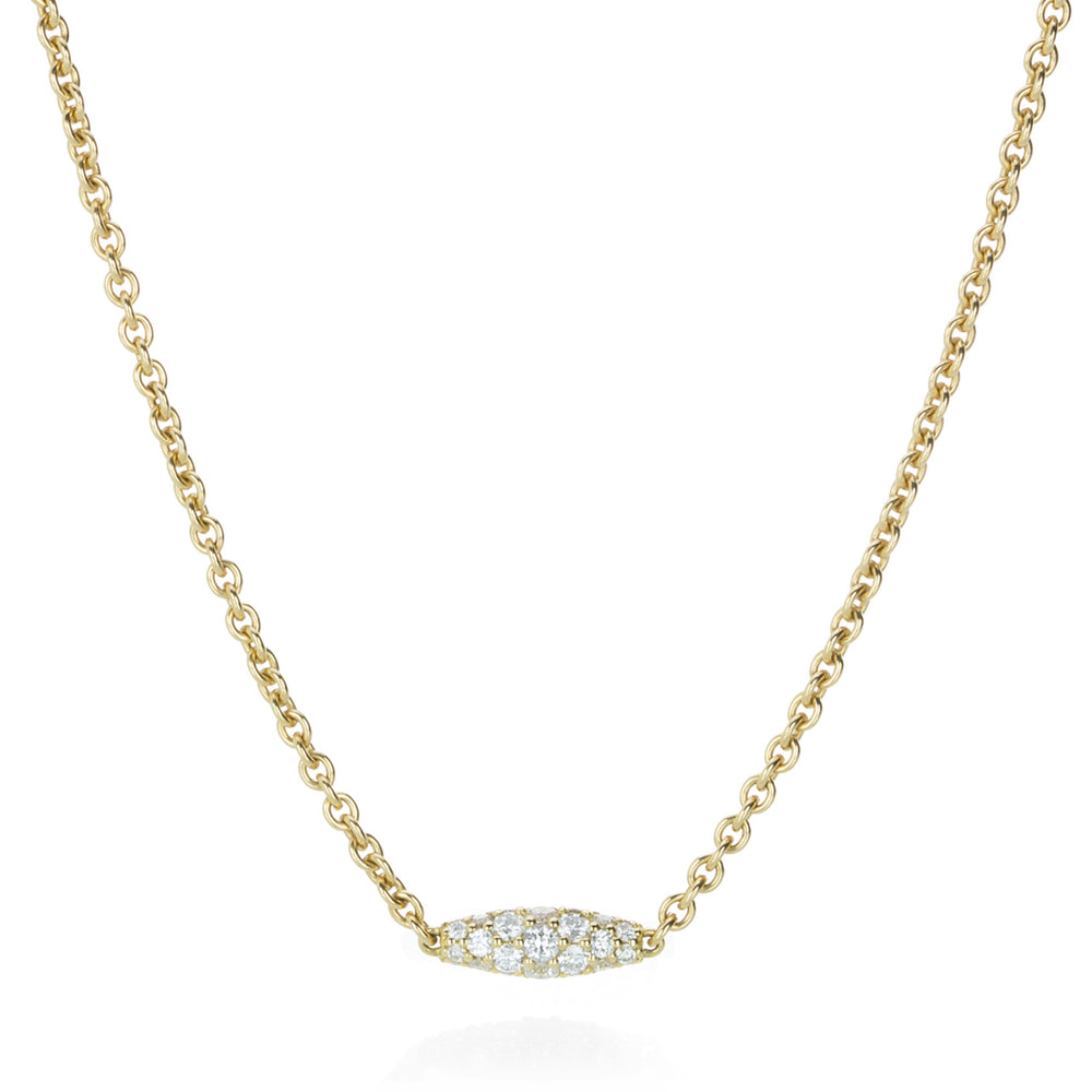 When just the right touch of sparkle will do, this Paul Morelli necklace will serve for you! Crafted in 18k yellow gold, a single large pipette element centers the piece with white diamonds totaling 1.19cttw. A single bezel set diamond accents the clasp. Total length measures 18". Handcrafted in Philadelphia, PA, U.S.