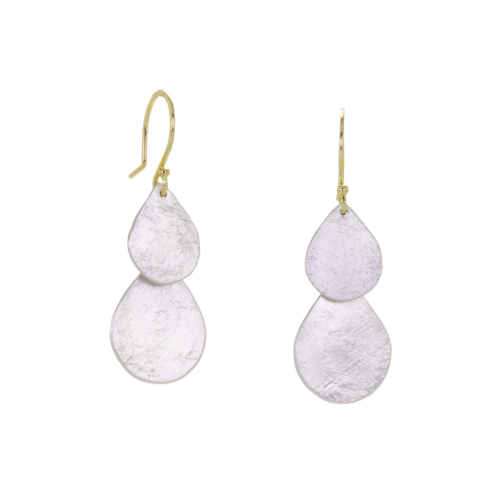 Smoothed like the ever flowing river waters over an ancient stone, this pair of small sterling silver teardrop earrings from Sarah McGuire washes over your soul with a sense of peace and beauty. Total length with 14k yellow gold ear wires measures 1 1/4". Handcrafted in Chicago, IL, U.S.