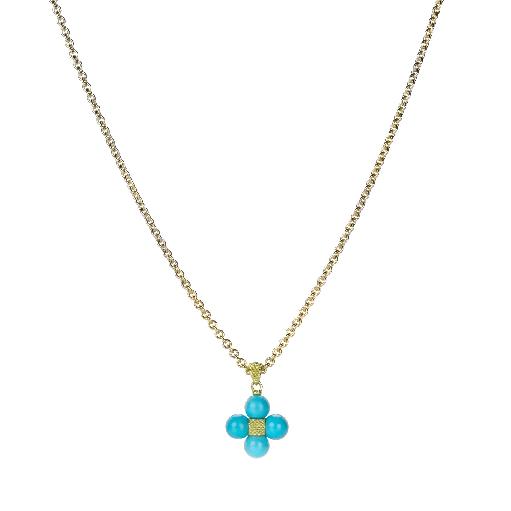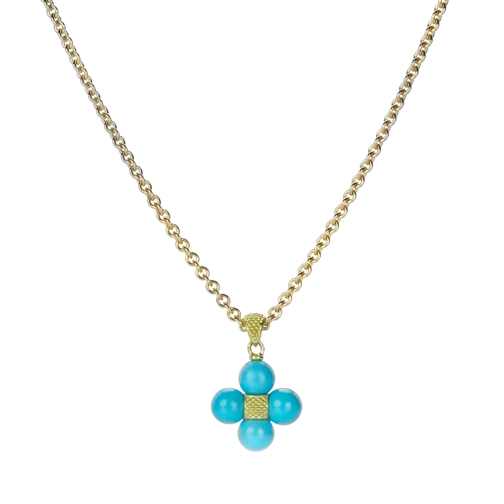A classic choice with a twist of personality, this 18k yellow gold necklace from Paul Morelli keeps your look in line. A bright pendant features 5mm turquoise beads and measures 5/8", including the bail. Chain length measures 18". Handcrafted in Philadelphia, PA, U.S.