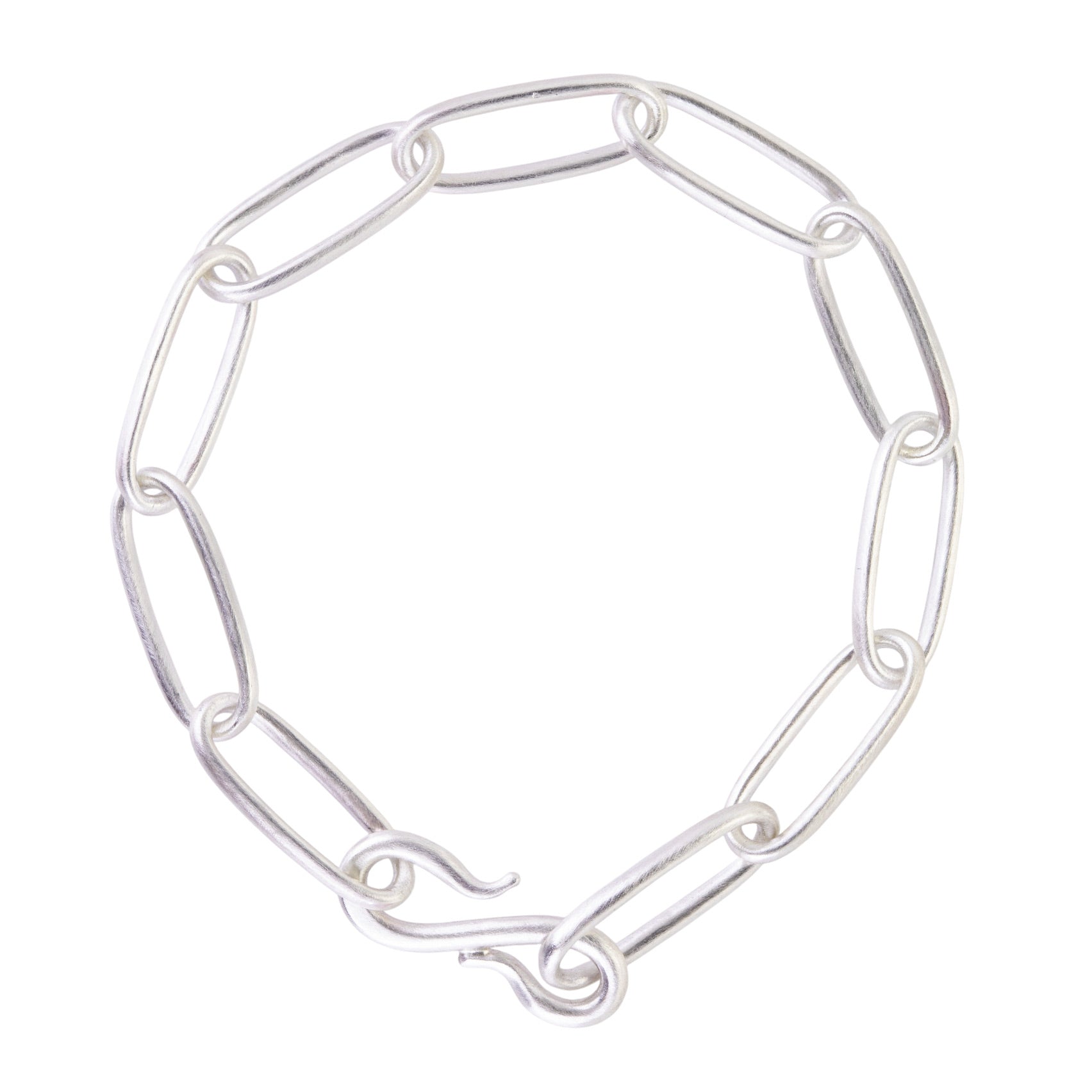 Sterling silver XXX bracelet with ten oval links measuring 8" in length. Handcrafted in Brooklyn, NY, U.S.