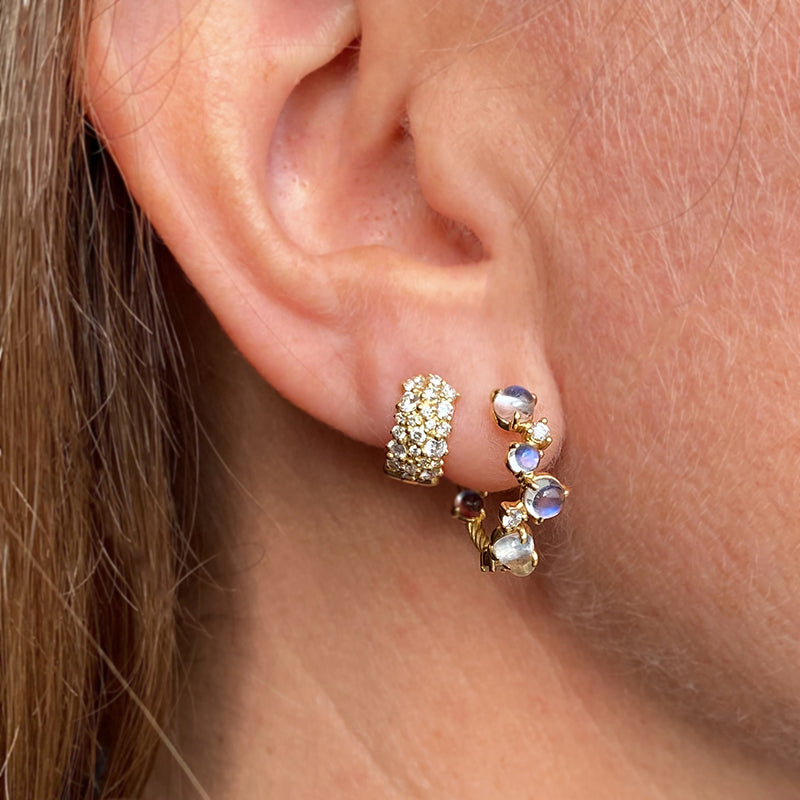 This pair of 18k yellow gold snap hoop huggies from Paul Morelli will add a dose of divine to your fine jewelry collection. With sparkling white diamond confetti totaling 0.93cttw, they will effortlessly transition from day into your evening ensemble and light up the night! Hoops measure 3/8" in diameter. Handcrafted in Philadelphia, PA, U.S.