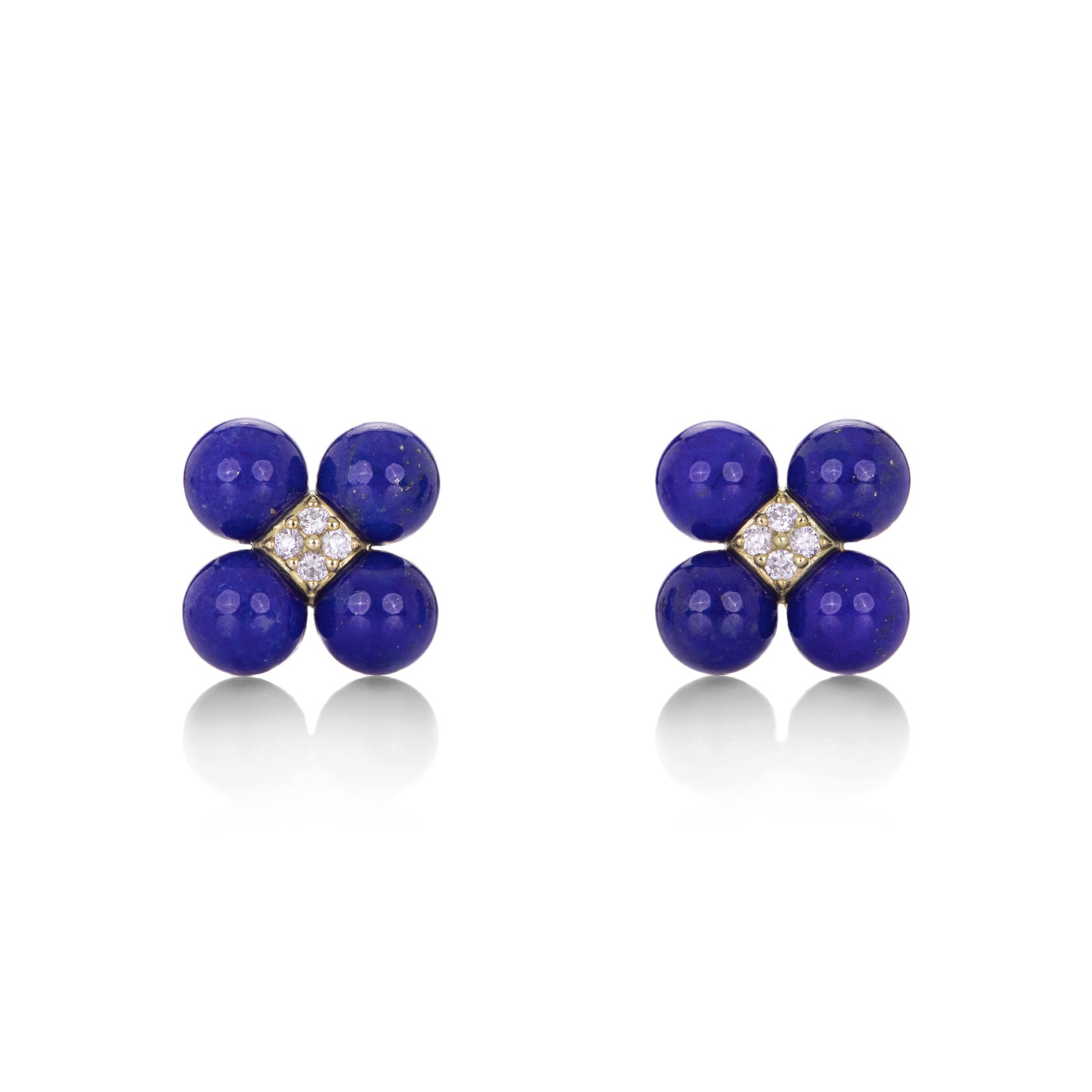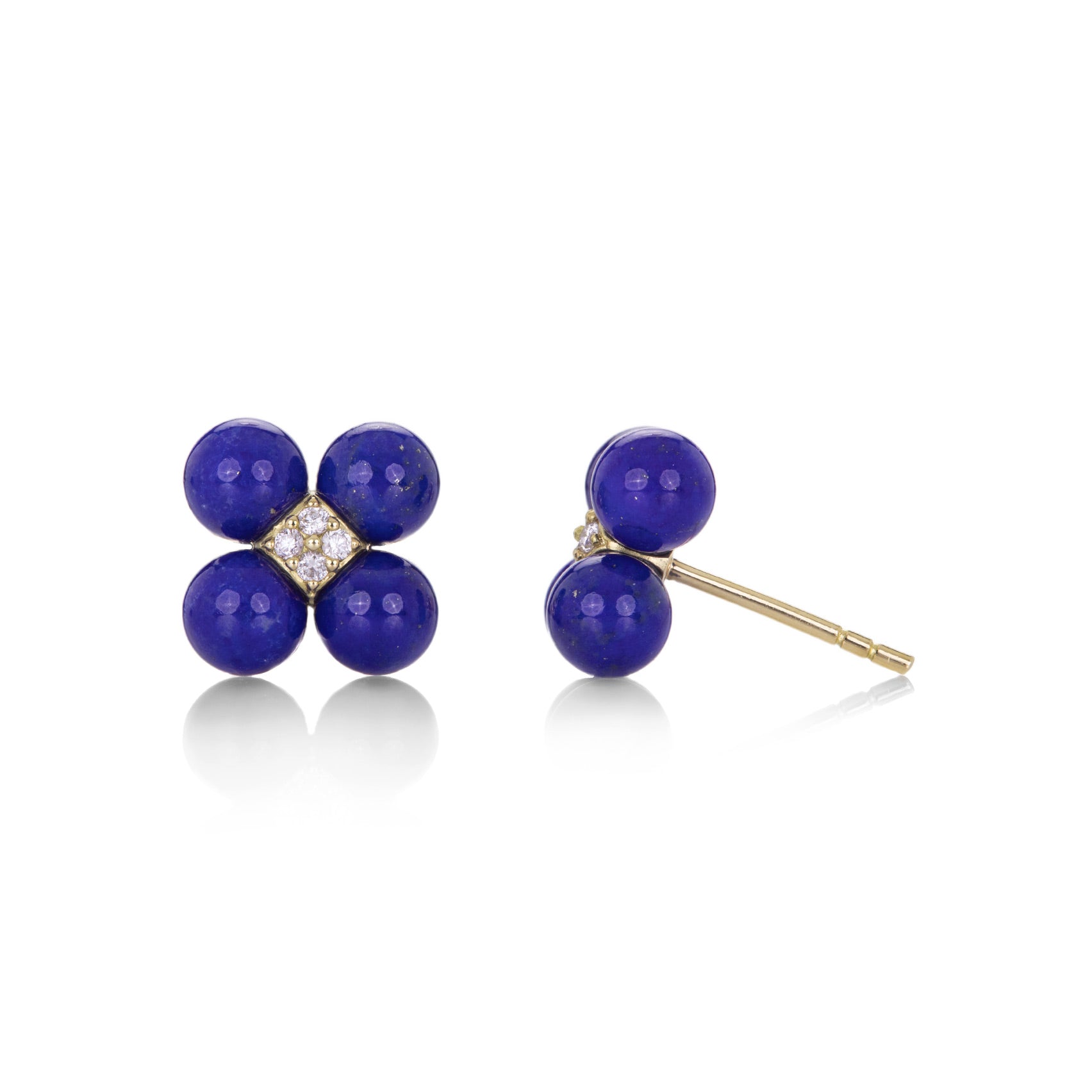 The perfect everyday pair, these 18k yellow gold sequence bead studs from Paul Morelli simply add up to beautiful. 5mm lapis and diamond centers totaling 0.11cttw bring the color and spark. Wear these with jeans and a tee or accent your business or formal look. Earrings measure 3/8" x 3/8". Handcrafted in Philadelphia, PA, U.S.