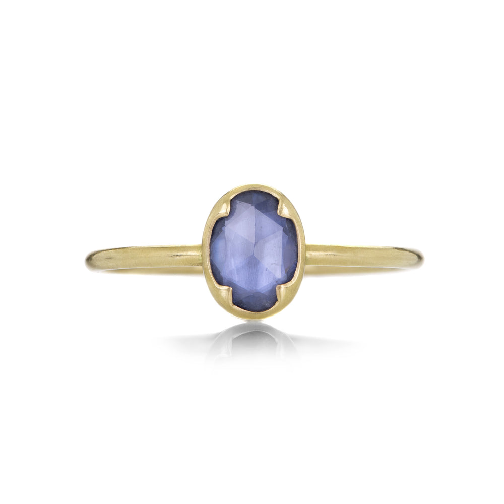 Feel the magic of true blue in this 18k yellow gold Gabriella Kiss ring. A small bezel set, 0.75ct oval blue sapphire adds a dose of precious color to your daily routine with a modern, designer edge. September’s birthstone never ceases to amaze. Stone measures 1/4" x 3/8”. Size 6.5. Handcrafted in Hudson Valley, NY, U.S.