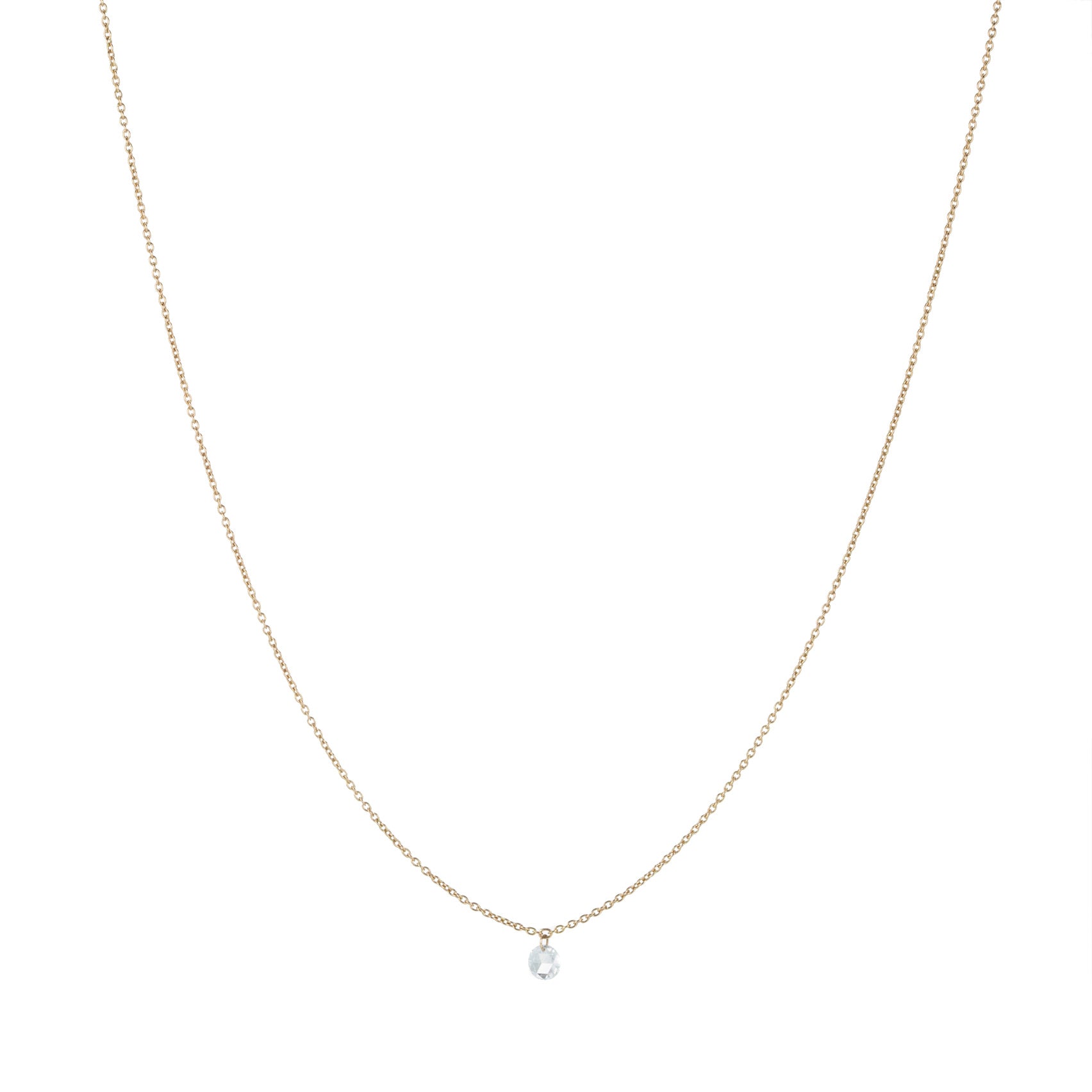 Wear a shimmering line drenched in gold in this 18k rose gold necklace from Sethi Couture. A single round 0.14ct rose cut diamond sends a sparkling sensations all around! Total length measures 16"-18" adjustable. Handcrafted in Indore, India.An 18k rose gold chain with a single round rose cut diamond totaling 0.14cttw. Total length measures 16" - 18". Handcrafted in Indore, India.
