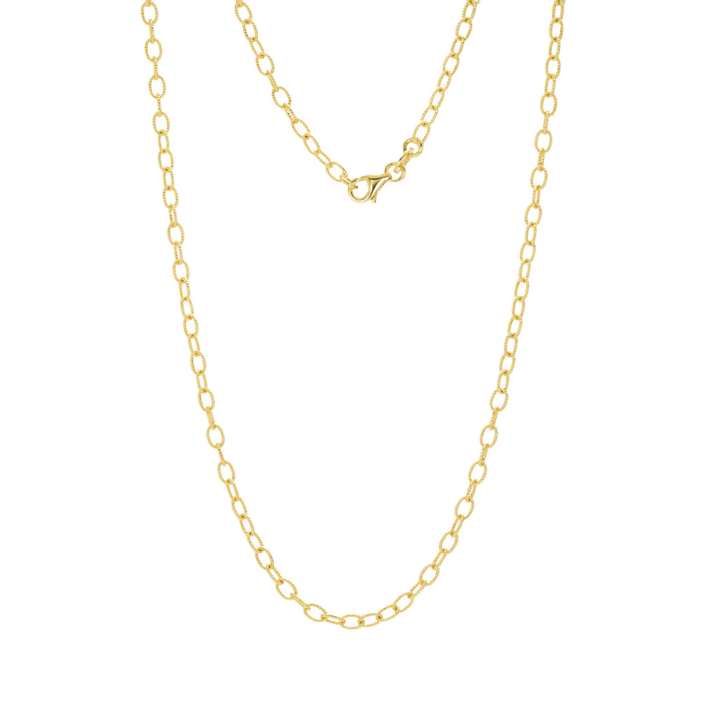 The perfect chain for your favorite pendants or for simply layering up with others, this 14k yellow gold textured twisted oval chain from Sethi Couture is your go-to! Total length with lobster clasp measures 16". Handcrafted in Indore, India.
