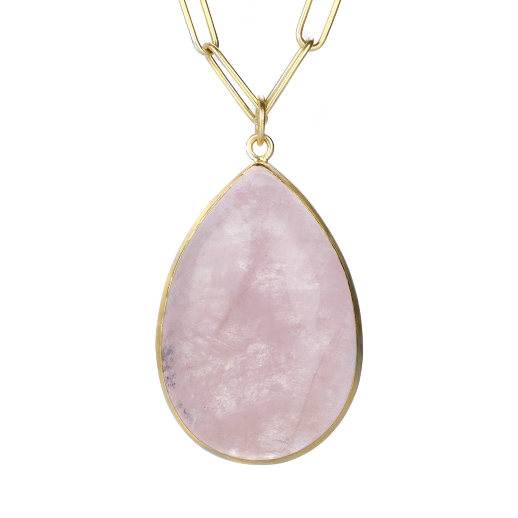 Elevate your heart center in this 18k yellow gold pendant from Maria Beaulieu. Featuring a bezel set, 22mm x 33mm soft pink morganite, this piece brings the romance! Pair it with one of Maria's coveted handmade gold chains to complete the look. Pendant measures 1 1/2". Chain is sold separately. Handcrafted in Brooklyn, NY, U.S.
