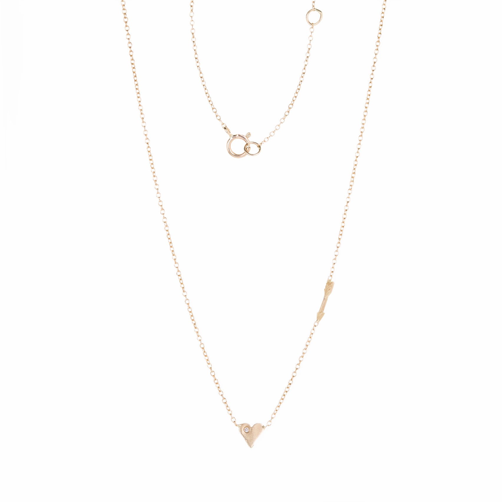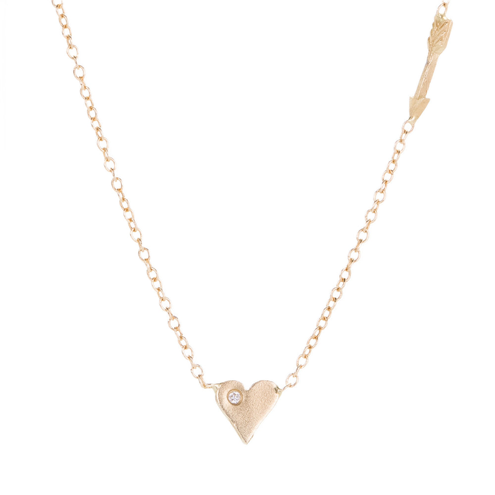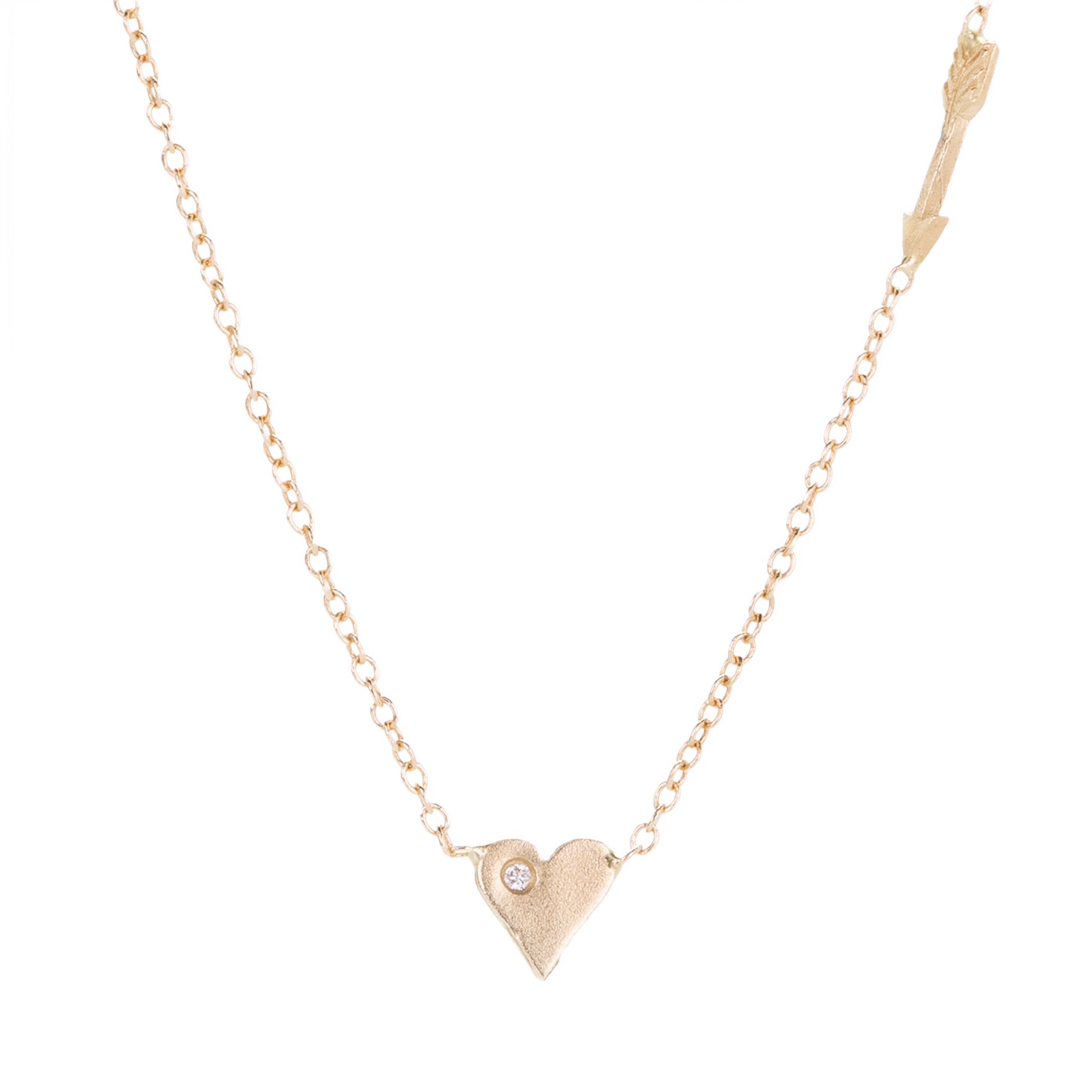 Charm your neck party in this 14k yellow gold necklace from Victoria Cunningham, featuring a lovingly carved heart with a diamond detail. The rustic, textured pendant is complemented with a tiny arrow in the chain. Necklace length measures 15 1/4” - 16 1/2”. Handcrafted in Los Angeles, CA, U.S.