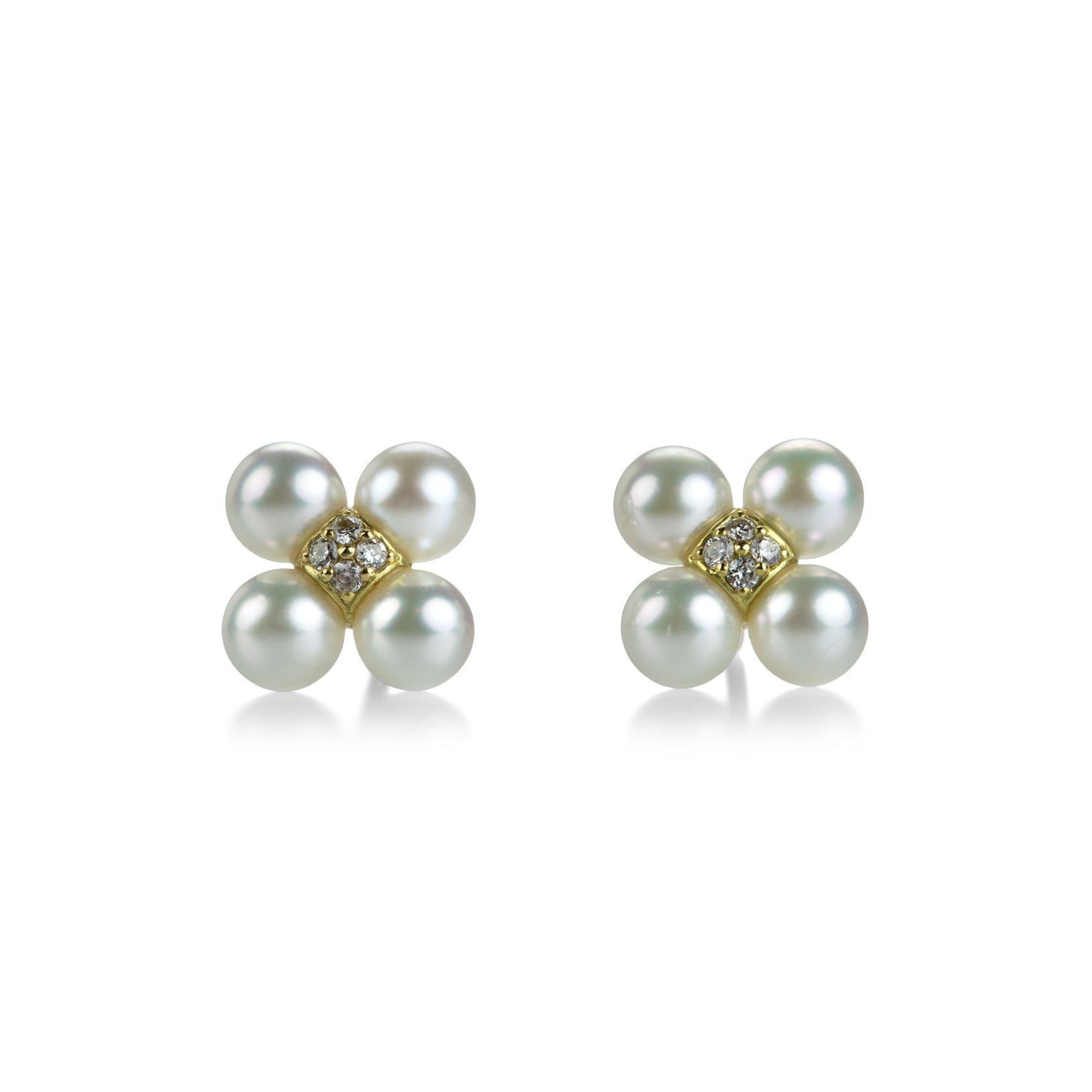 The perfect everyday pair, these 18k yellow gold sequence bead studs from Paul Morelli simply add up to beautiful. White pearls and white diamonds totaling 0.11cttw bring the glow and glimmer. Wear these with jeans and a tee or accent your business or formal look. Earrings measure 3/8" x 3/8". Handcrafted in Philadelphia, PA, U.S.