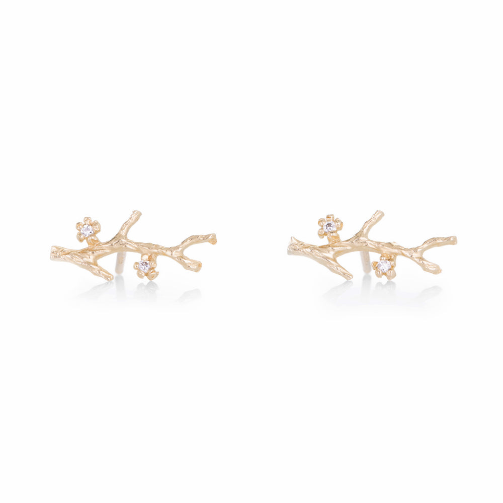 Charm your lobes with organic delight in this pair of 14k yellow gold studs from Victoria Cunningham. The wonderfully detailed branches feature sparkling diamond blooms. Earrings measure just under 1/4” x 1/2". Handcrafted in Los Angeles, CA, U.S.