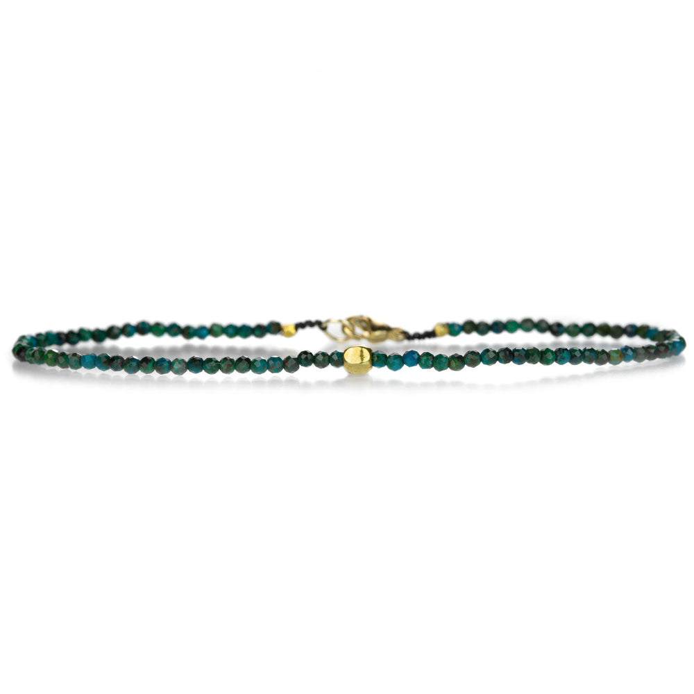 Perfect for layering, this faceted dark chrysoprase beaded bracelet from Margaret Solow would also make a delicate accent piece all on its own. With an 18k yellow gold accent bead and a gold lobster clasp, the total length measures 7". Handcrafted in Los Angeles, CA, U.S.