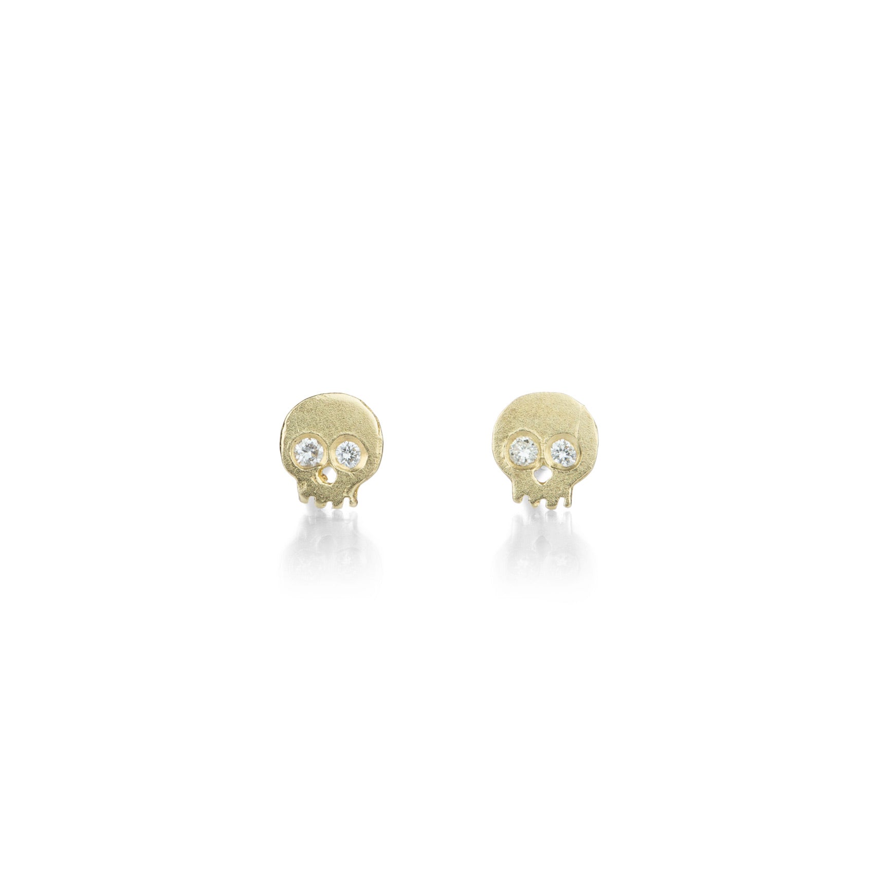 Charm your lobes with this fun, fiery pair of 14k yellow gold studs from Victoria Cunningham. The lighthearted skulls feature eyes of diamonds totaling 0.04cttw. Studs measure 3/8" x 3/8“. Handcrafted in Los Angeles, CA, U.S.