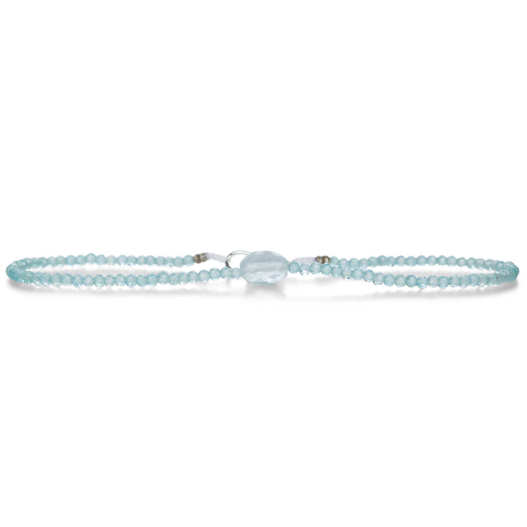 Perfect for layering, this faceted apatite beaded bracelet from Margaret Solow would also make a delicate accent piece all on its own. With a faceted, oval aquamarine accent bead and a sterling silver lobster clasp, the total length measures 7". Handcrafted in Los Angeles, CA, U.S.