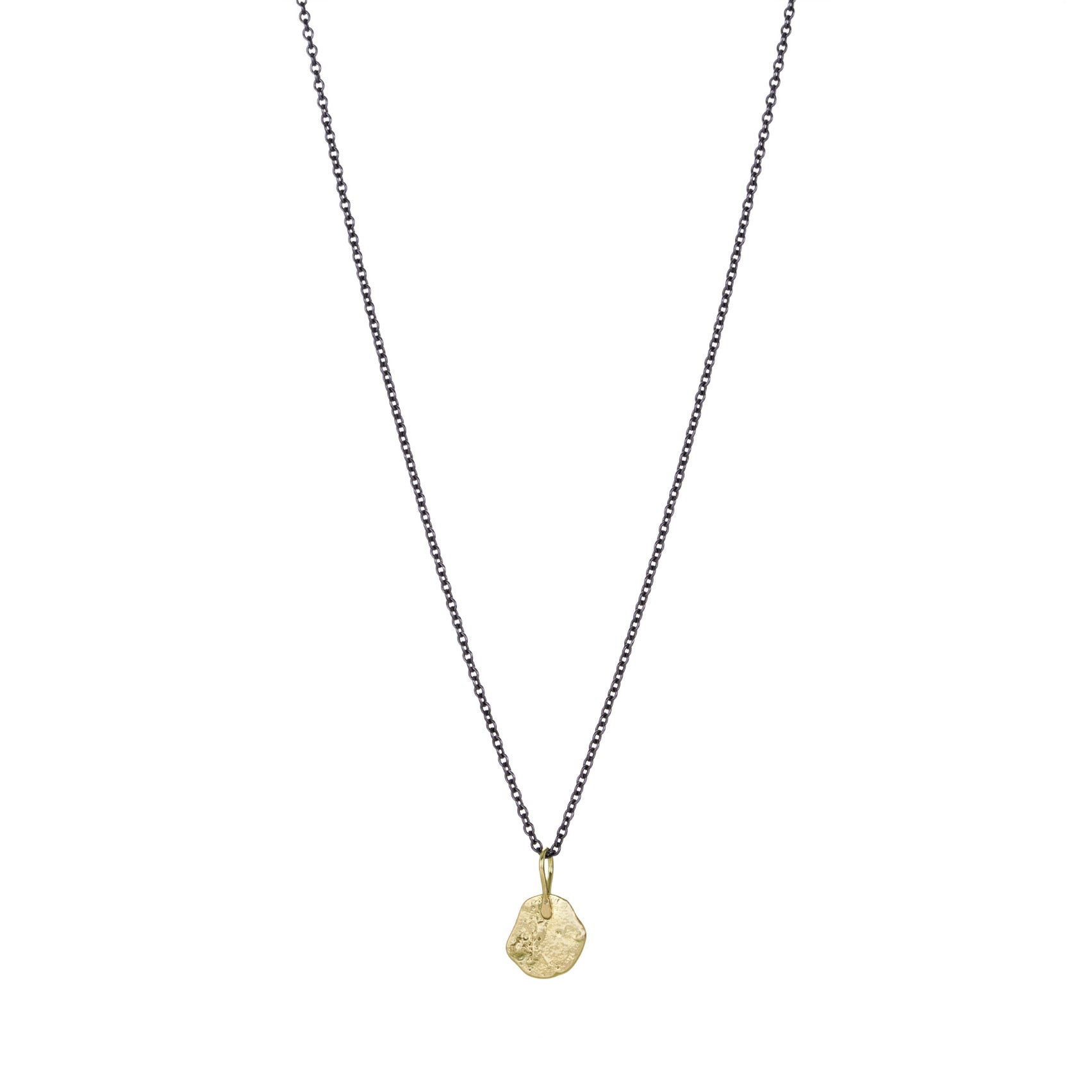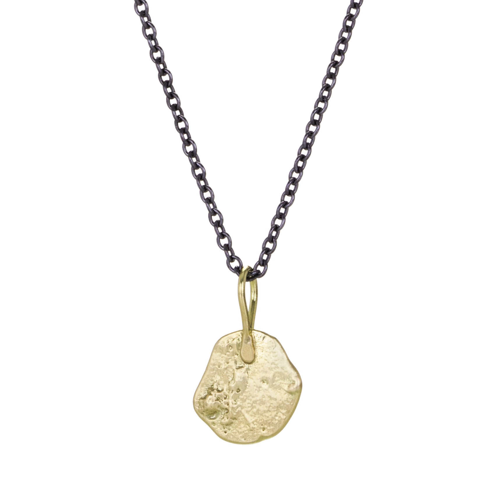 Experience pure golden alchemy with this one of a kind pendant from Sarah McGuire. Magnificently textured with the essence of giant kelp, this piece can anchor a pendant cluster or boldly stand alone. Total length measures 5/8". Pendant only, chain is sold separately. Handcrafted in Chicago, IL, U.S.